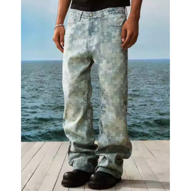 【DRIP6793】YAD Puzzle Checkered Print Loose Denim