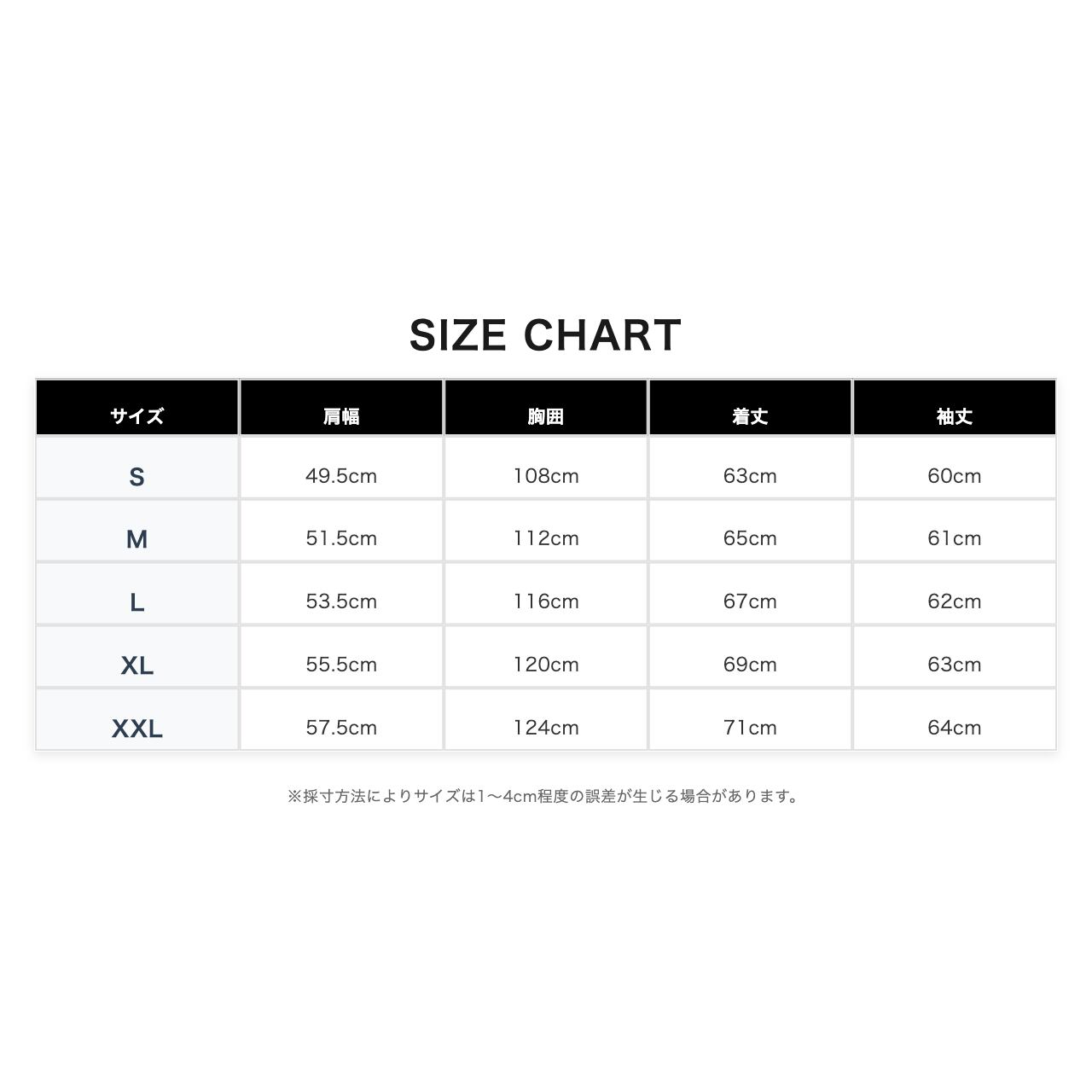 【S】 肩幅49.5cm/胸囲108cm/着丈63cm/袖丈60cm