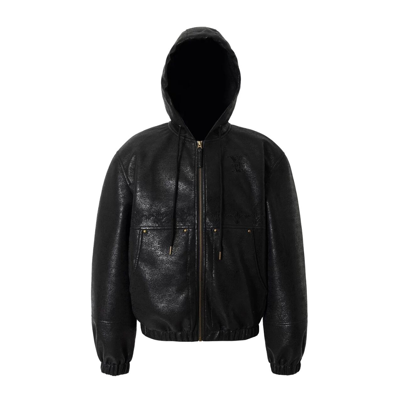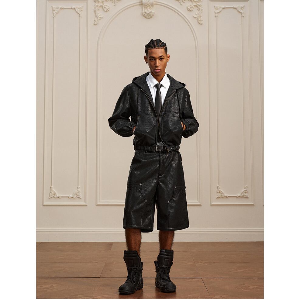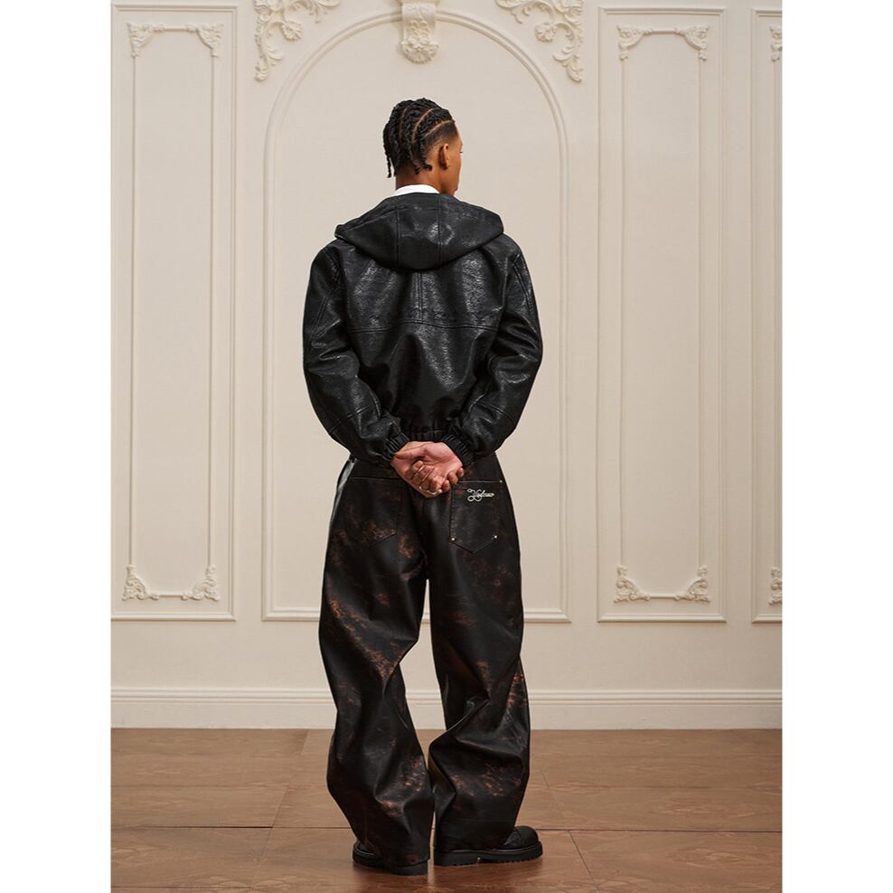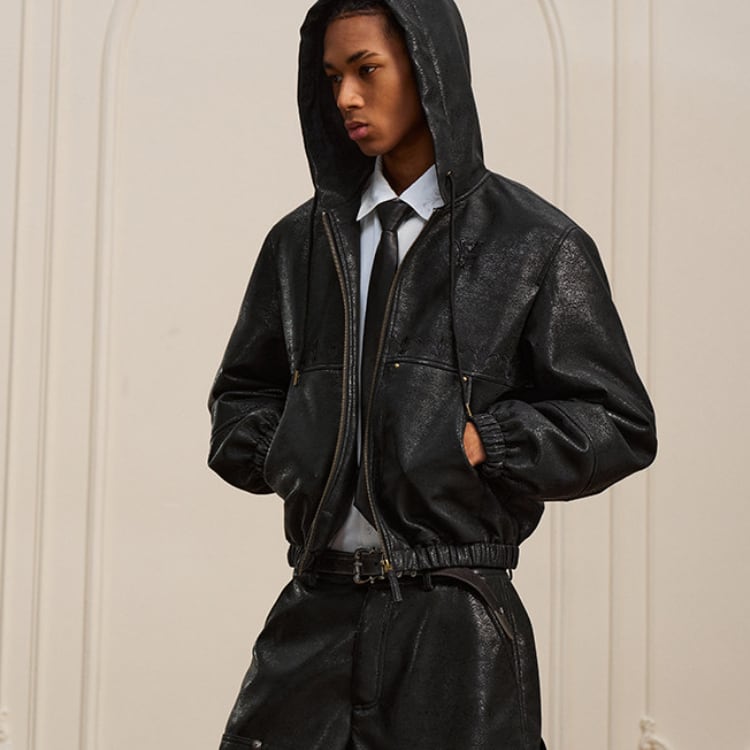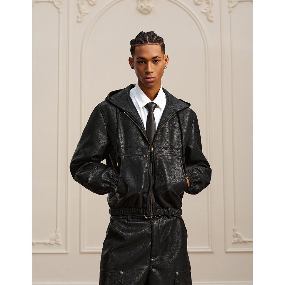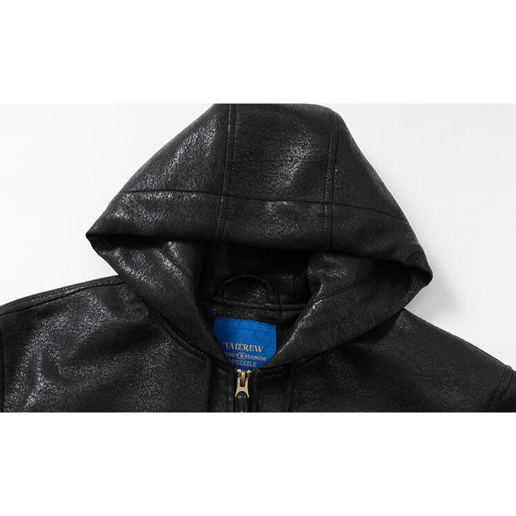 【DRIP6811】YAD Cracked Leather Hooded Bomber Jacket