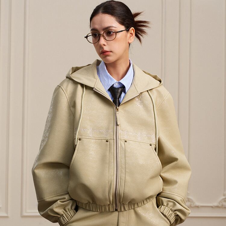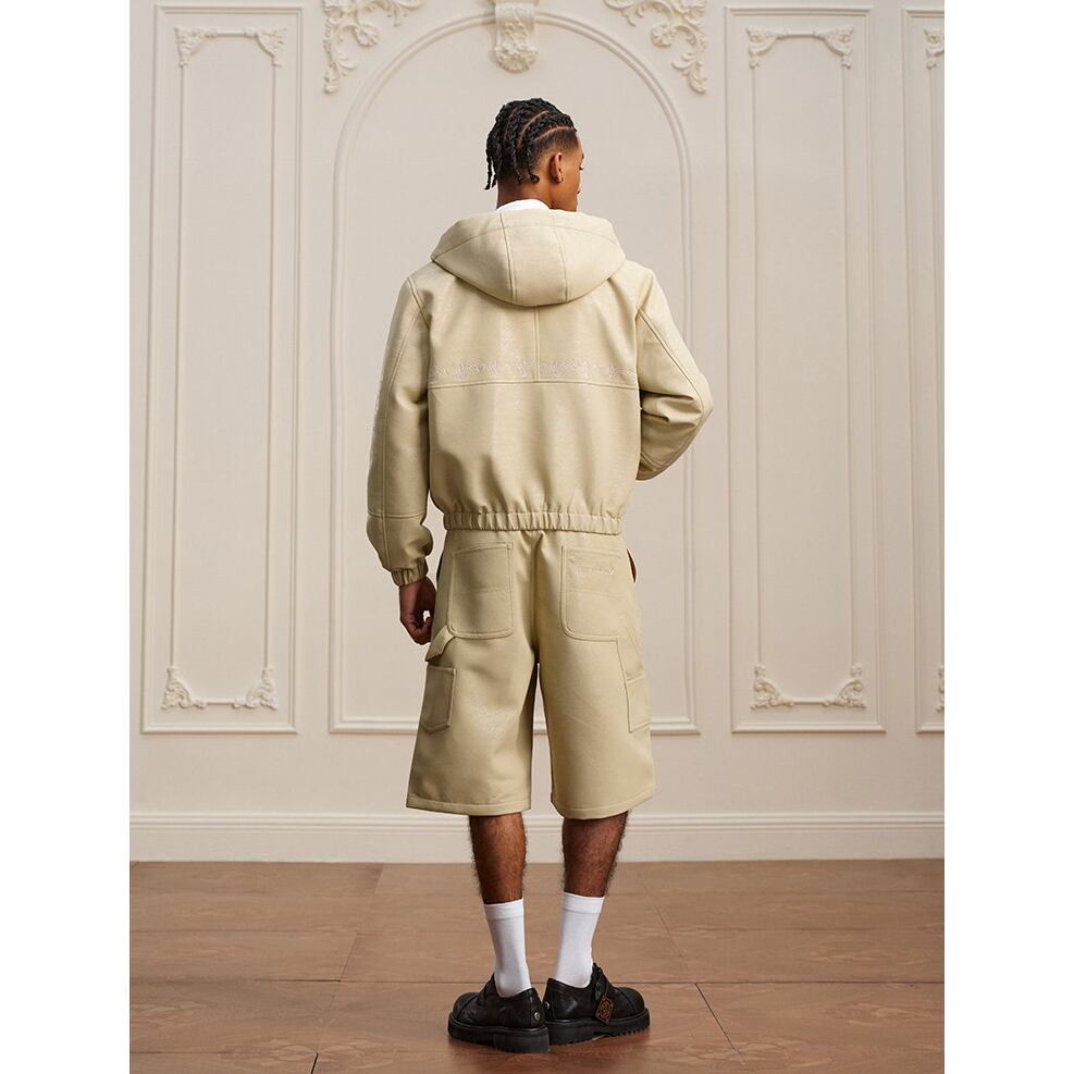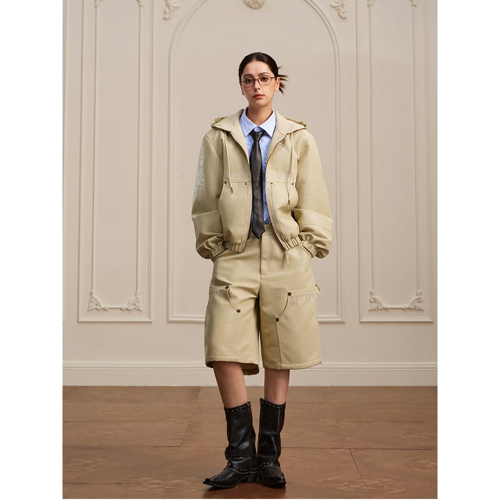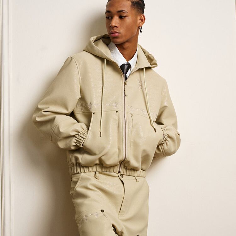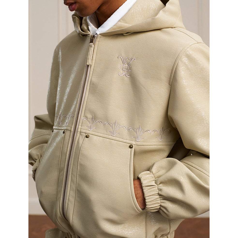 【DRIP6811】YAD Cracked Leather Hooded Bomber Jacket