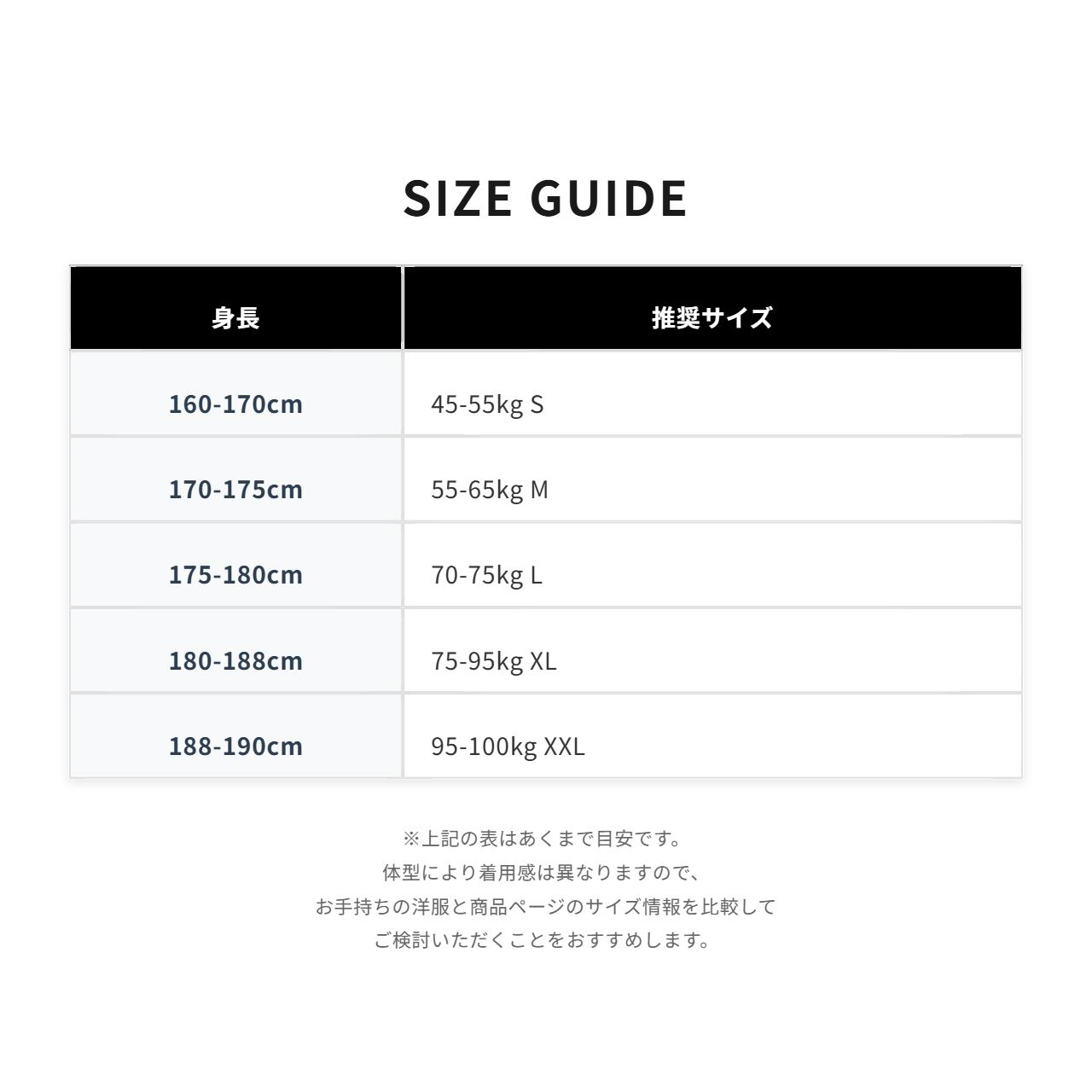■ 身長別 サイズ推奨リスト