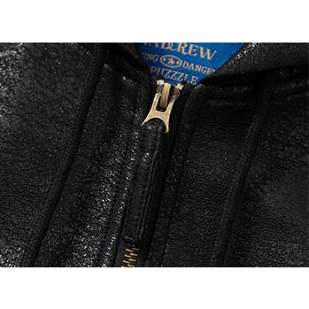 クラックレザーの独特な質感が目を引くフーディージャケット。