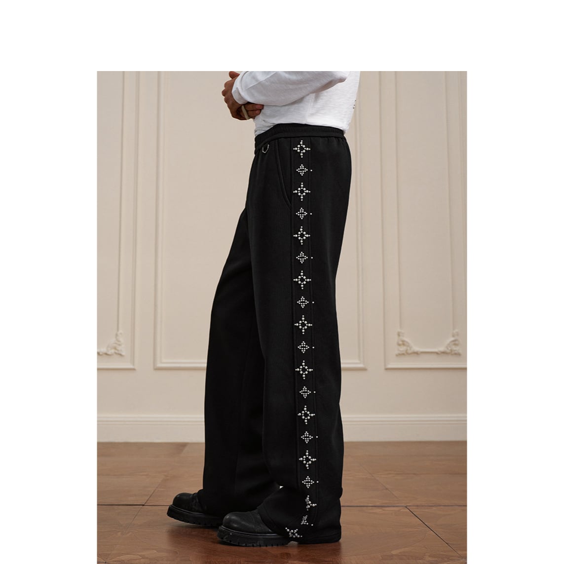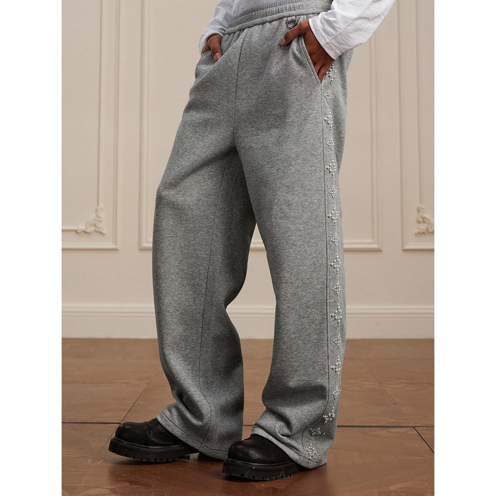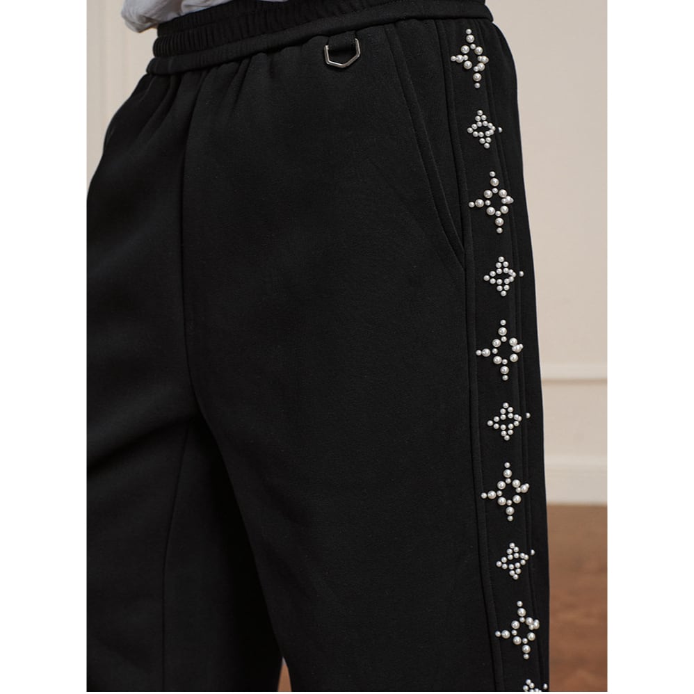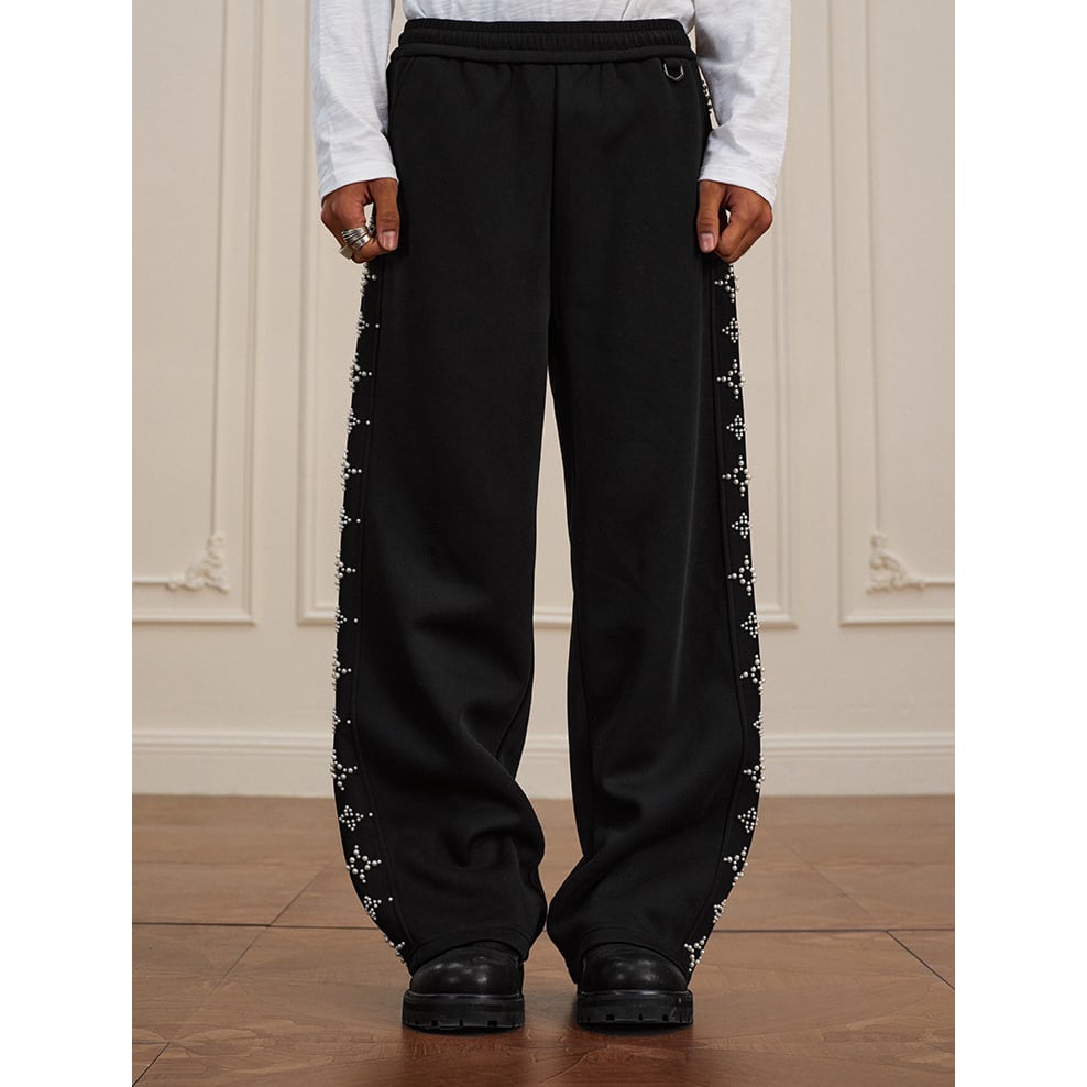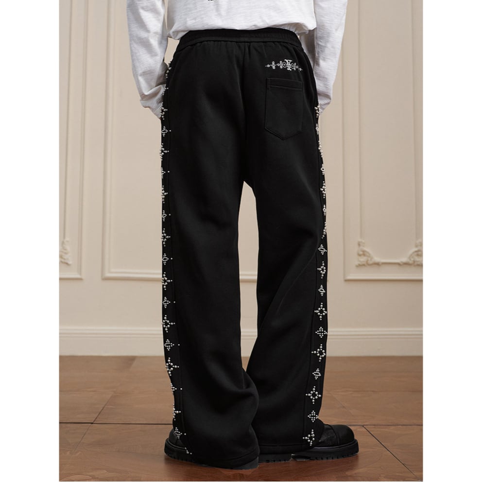 【DRIP6812】YAD Pearl Cross Studded Wide Leg Sweatpants