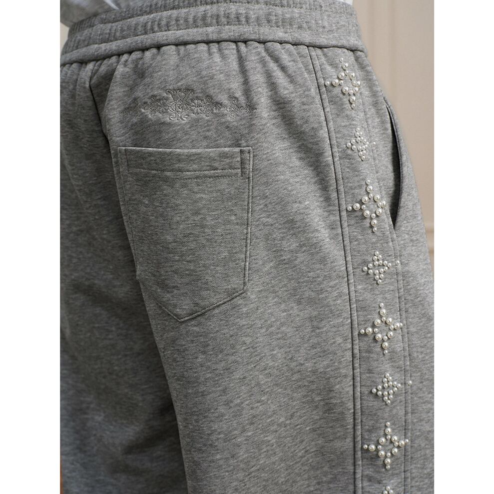 サイドラインに施されたパールとスタッズのクロスモチーフが目を引くワイドレッグスウェットパンツ。