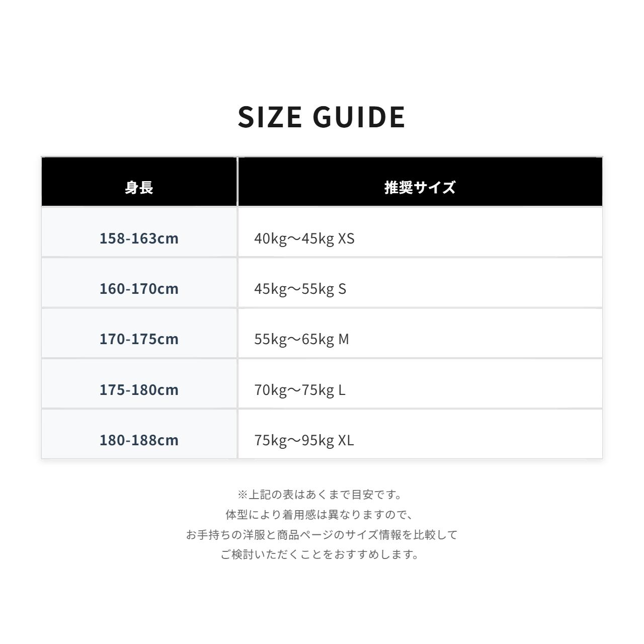 ■ 身長別 サイズ推奨リスト