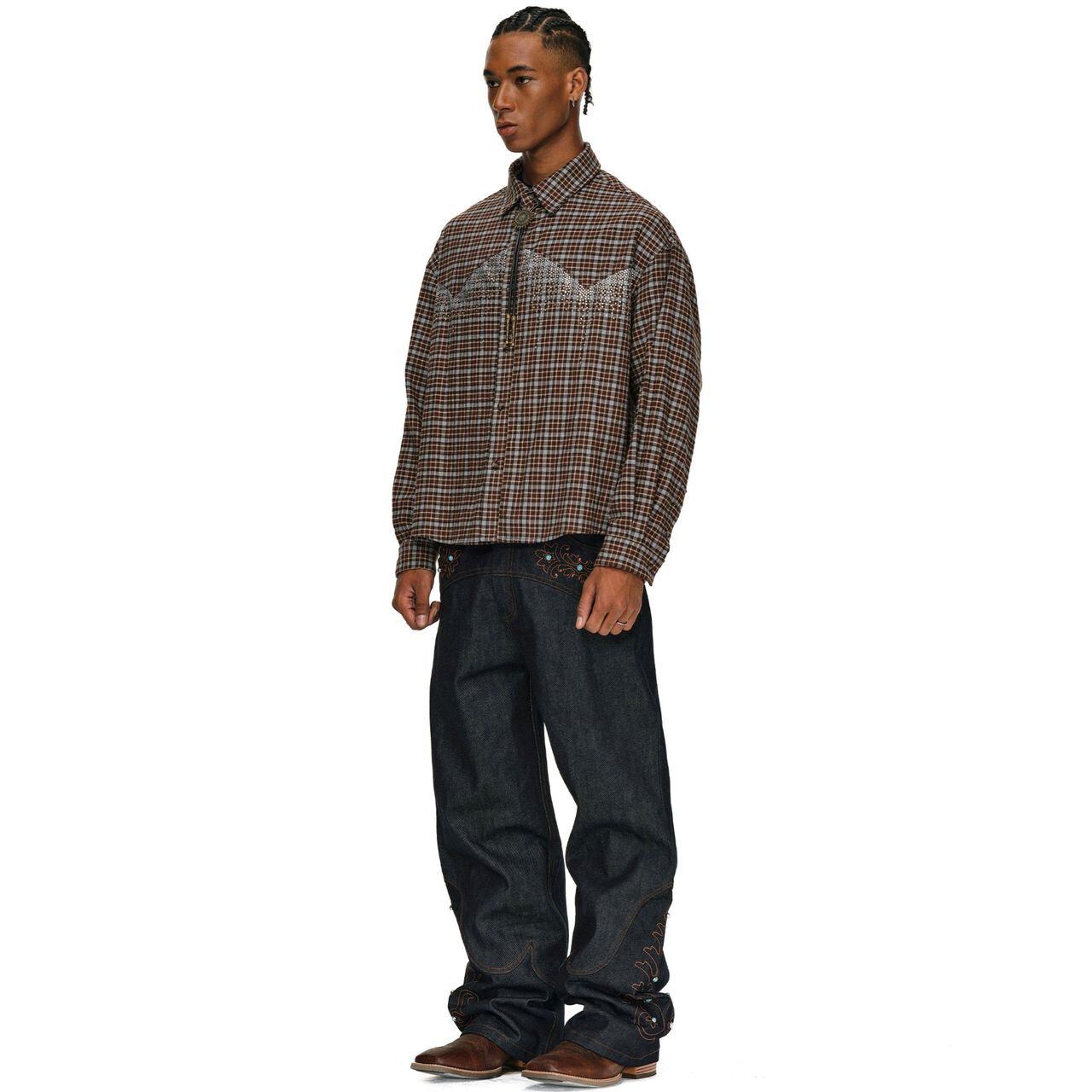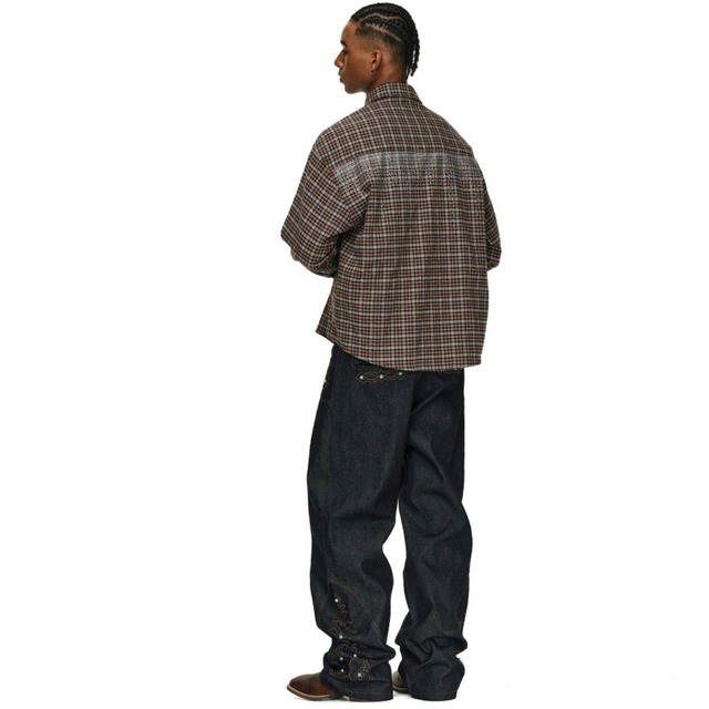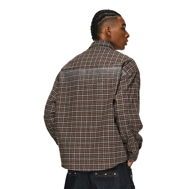 ウエスタンヨーク部分にラインストーンを散りばめた、存在感抜群のチェックシャツ。