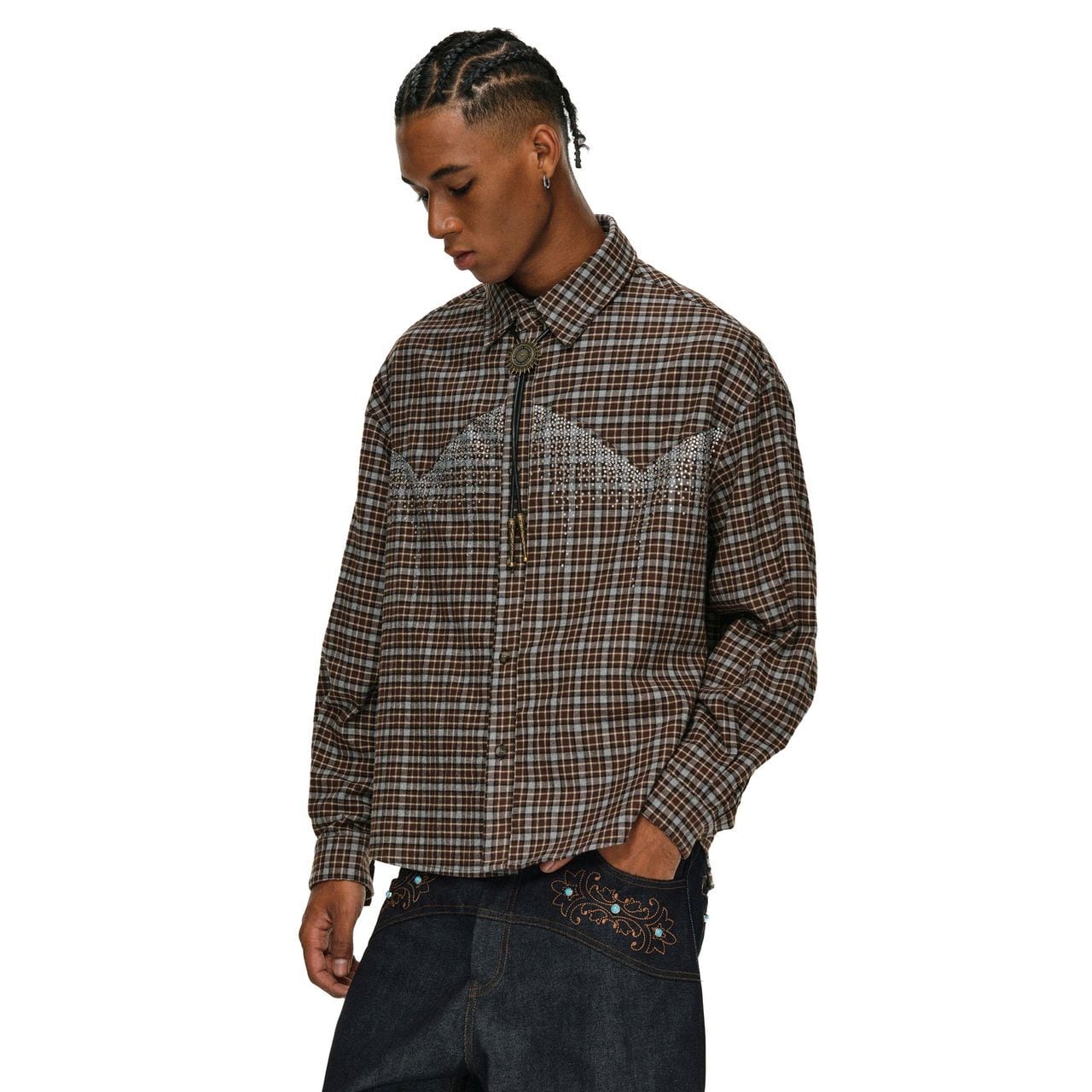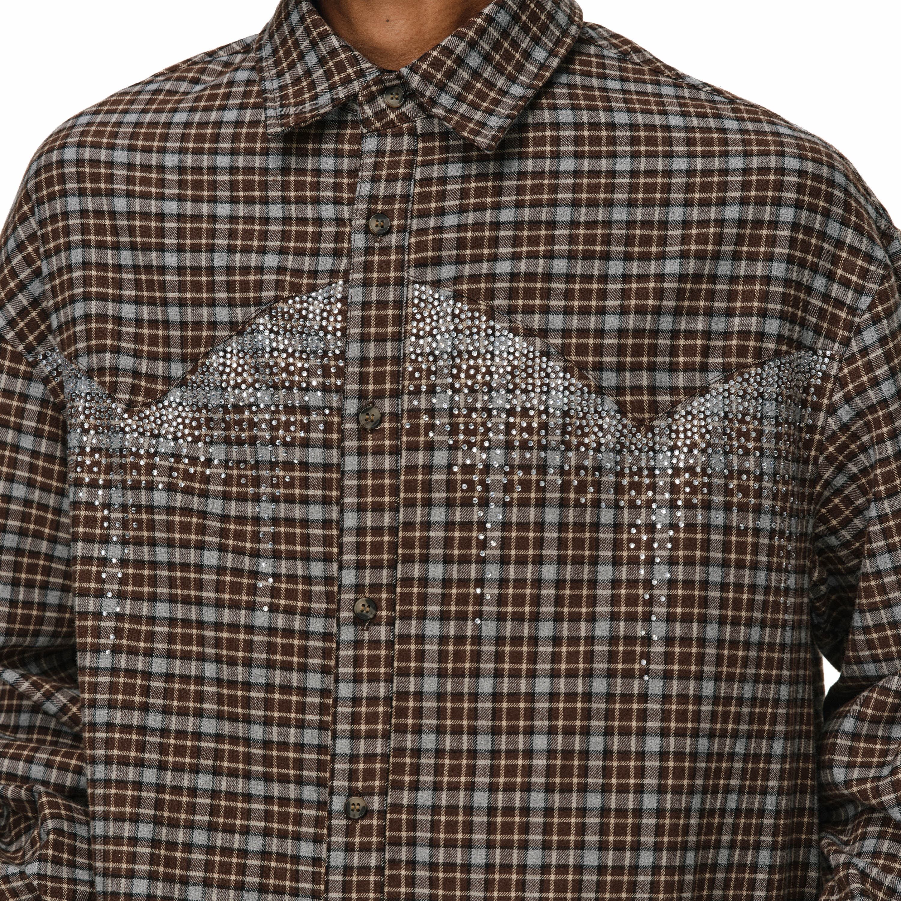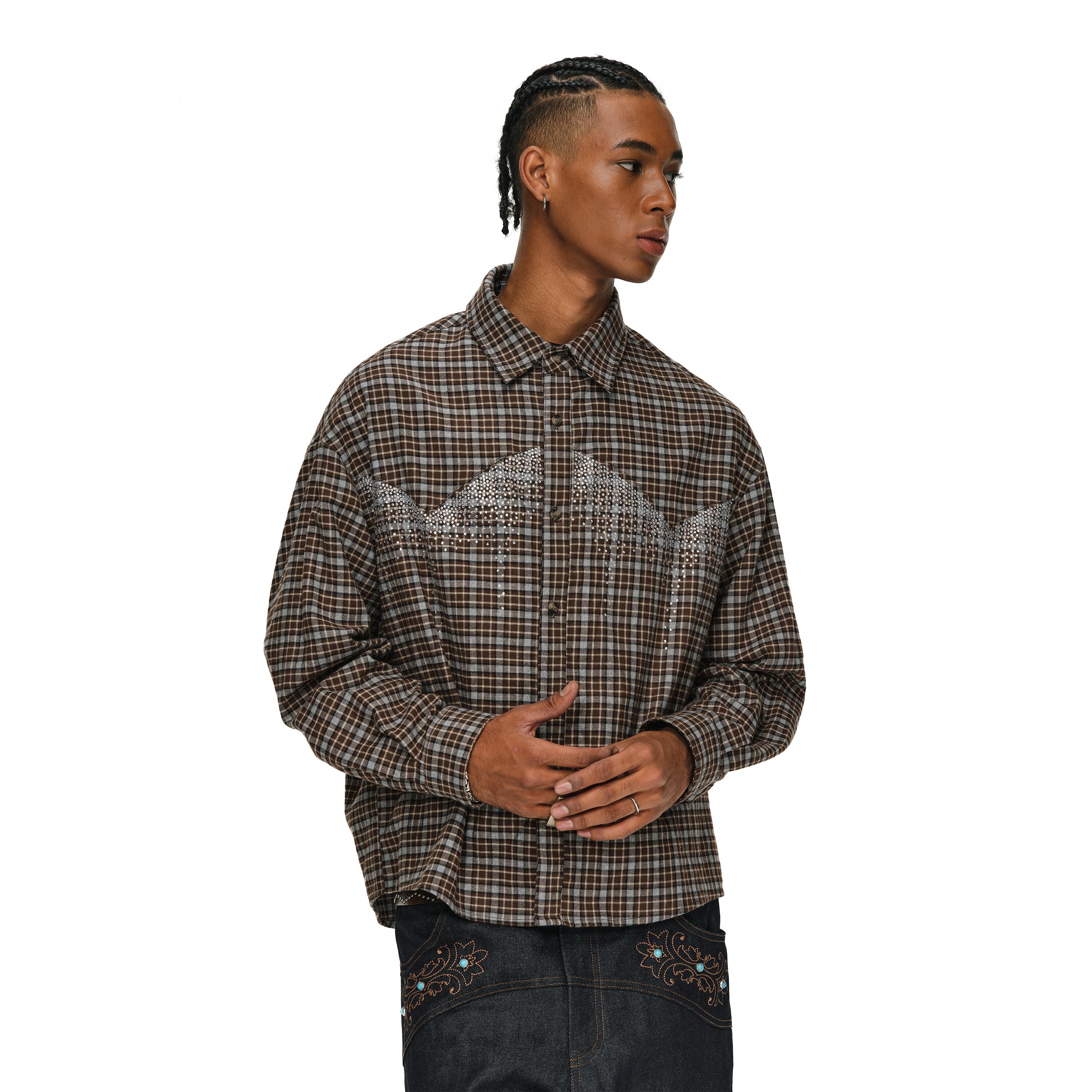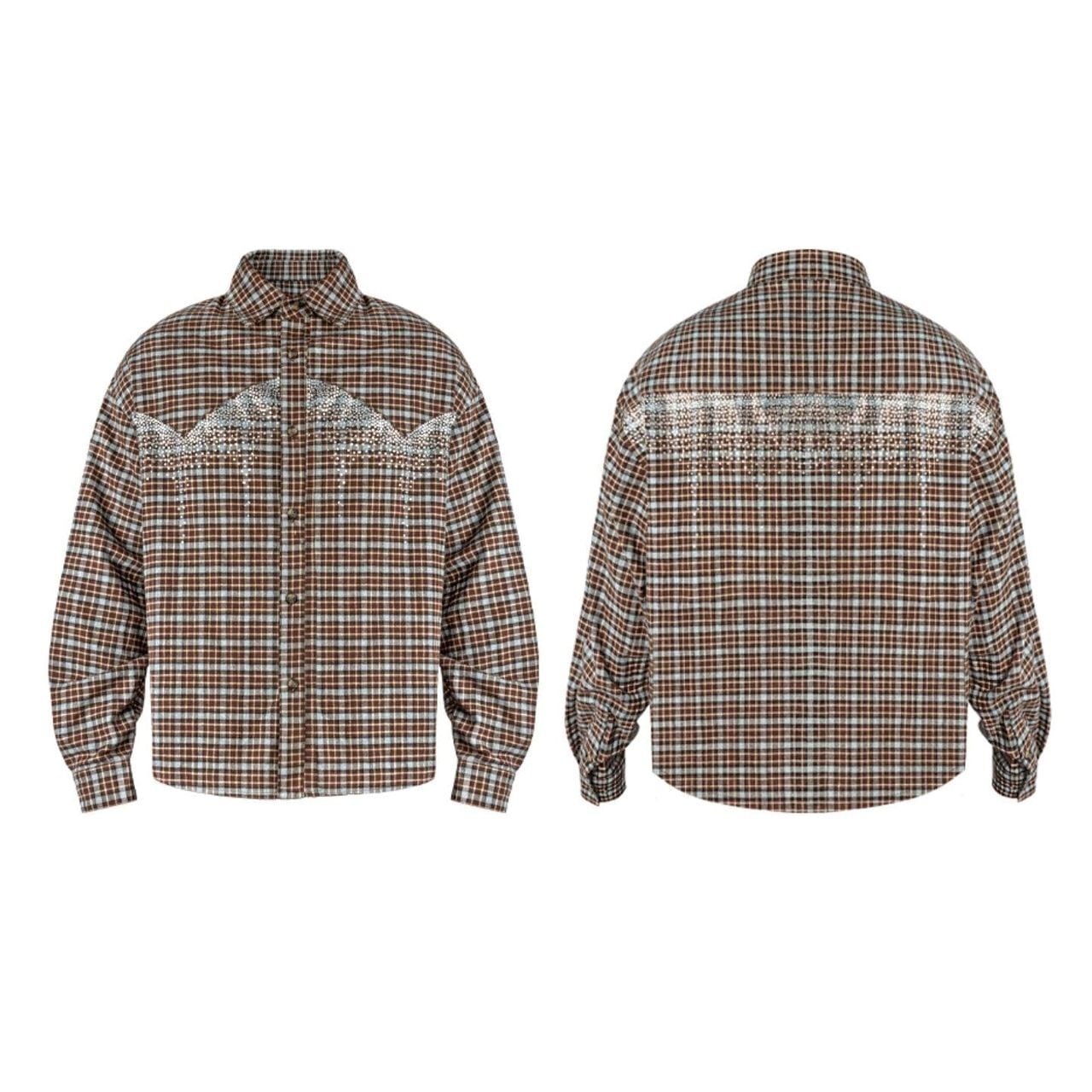 【DRIP6817】ANT Rhinestone Plaid Western Shirt
