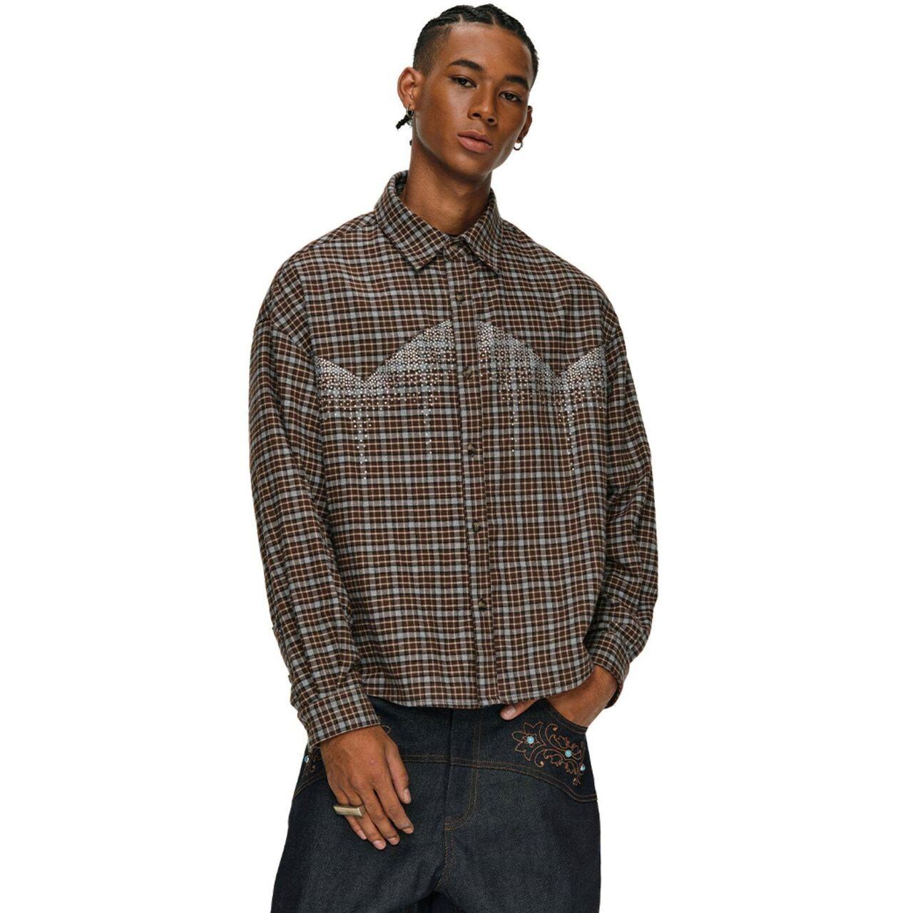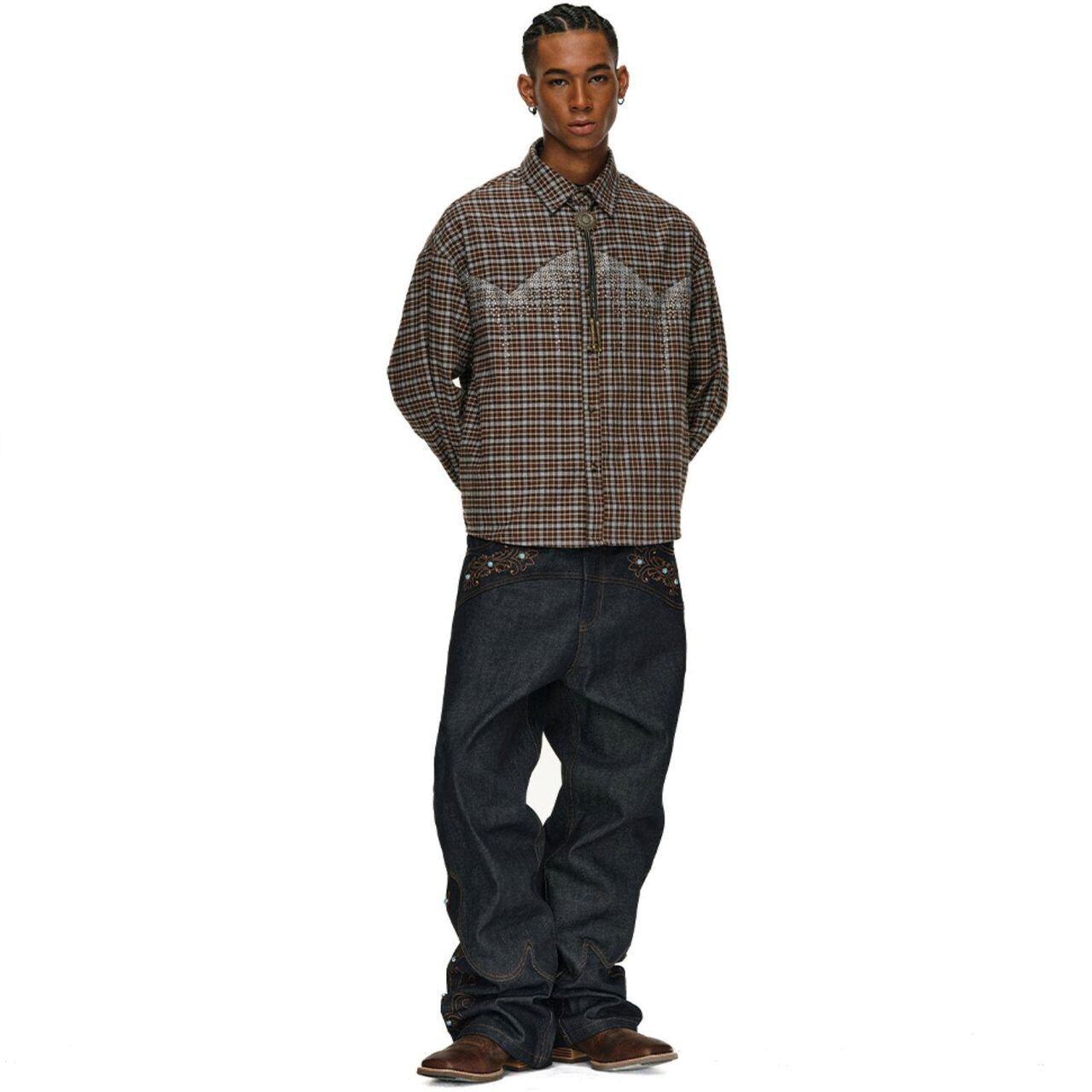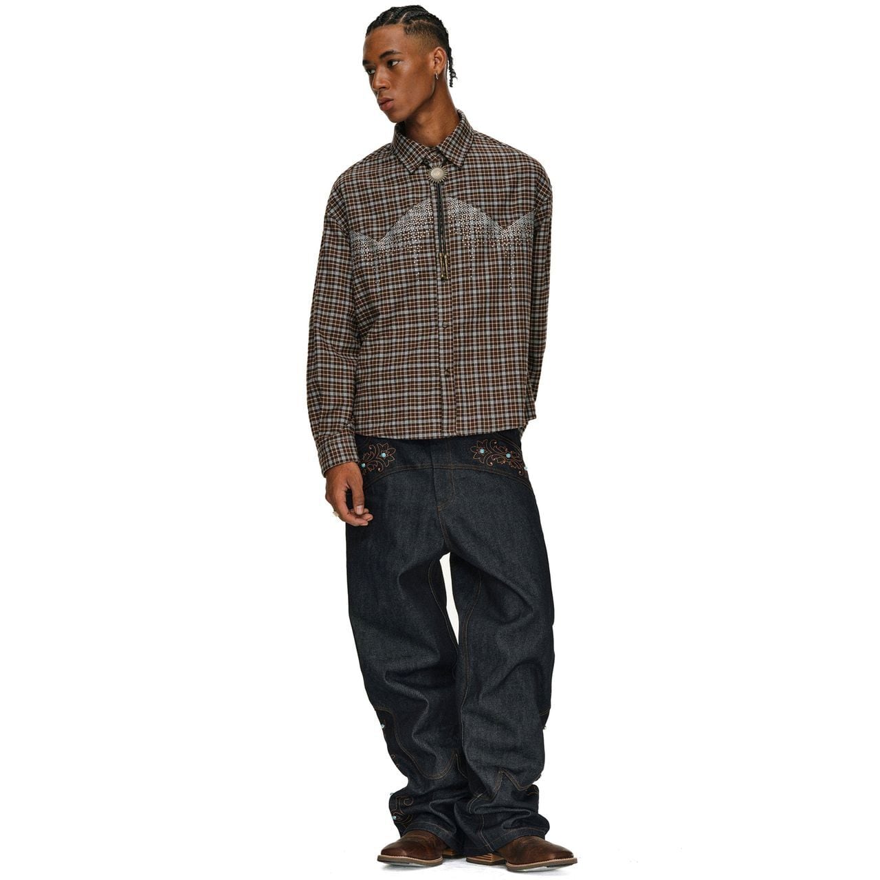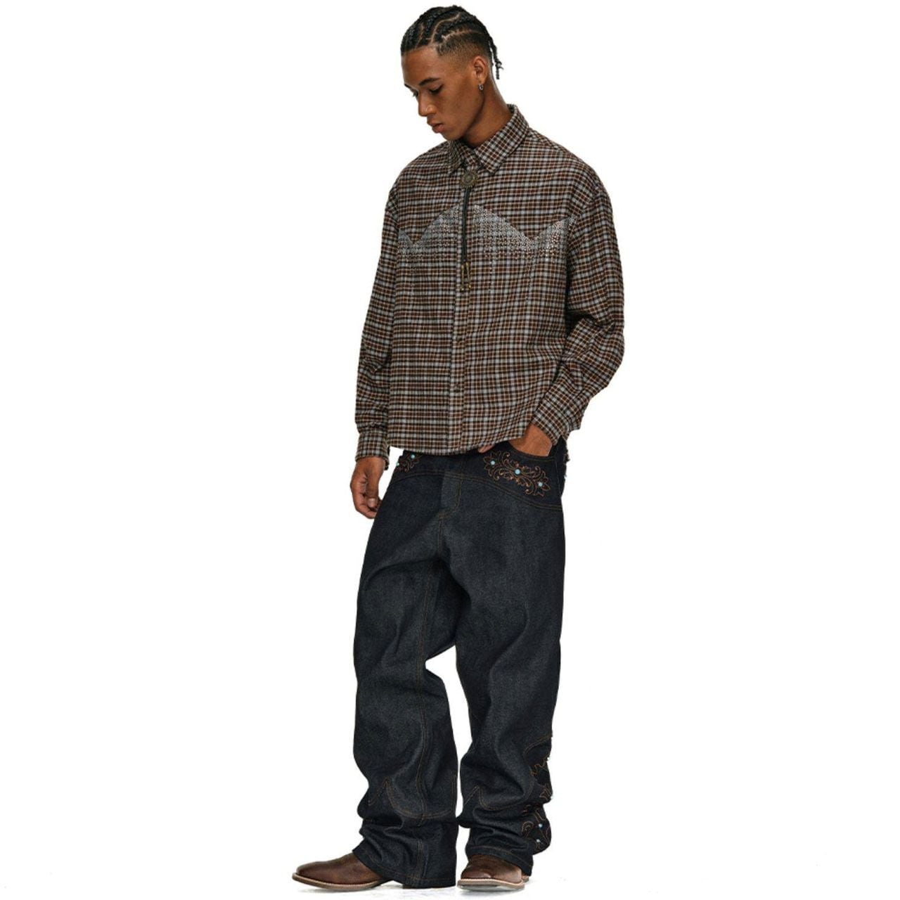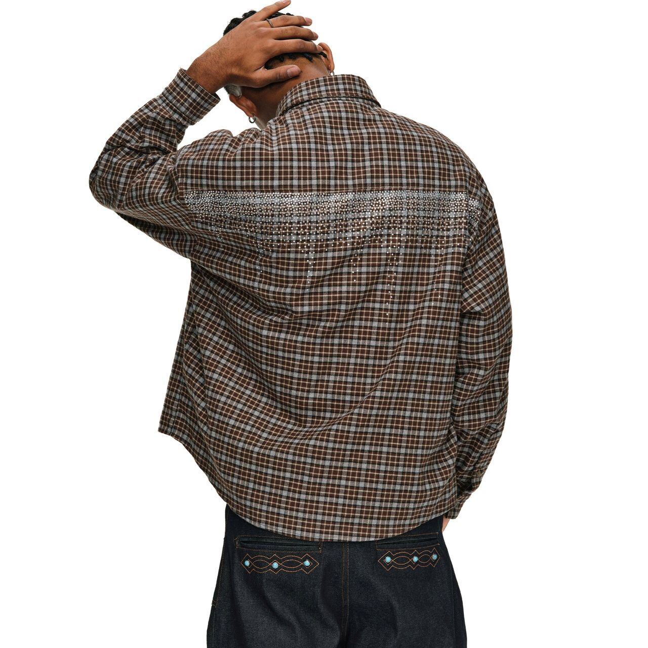 【DRIP6817】ANT Rhinestone Plaid Western Shirt