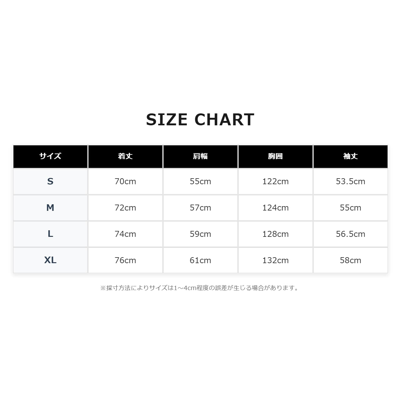 【M】 着丈72cm/肩幅57cm/胸囲124cm/袖丈55cm