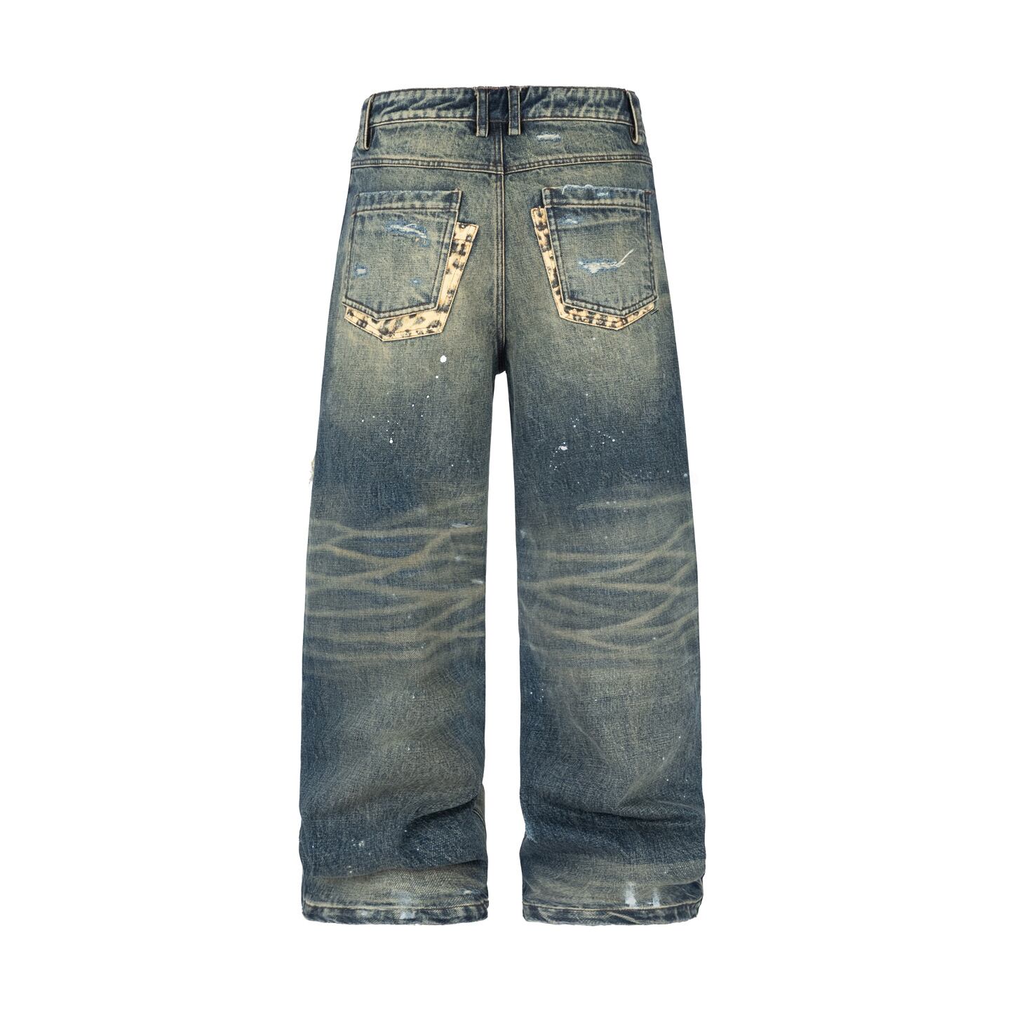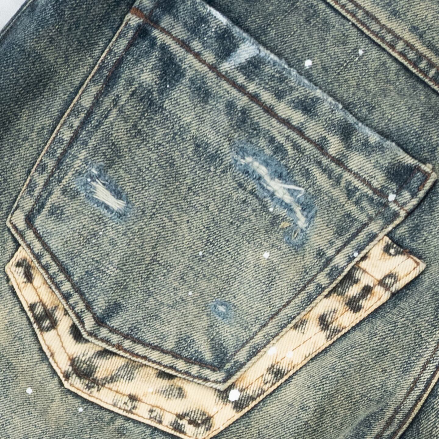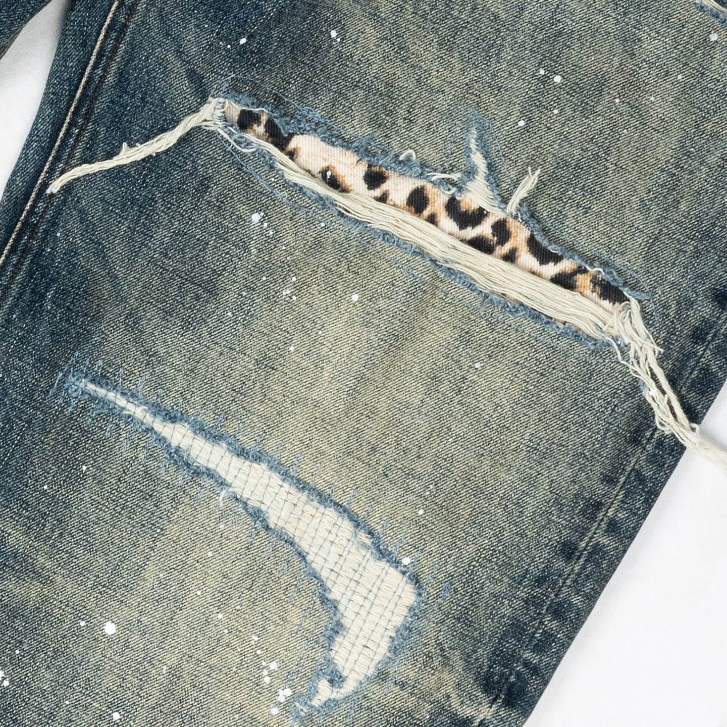 【DRIP6820】ANT Leopard Patch Distressed Baggy Jeans