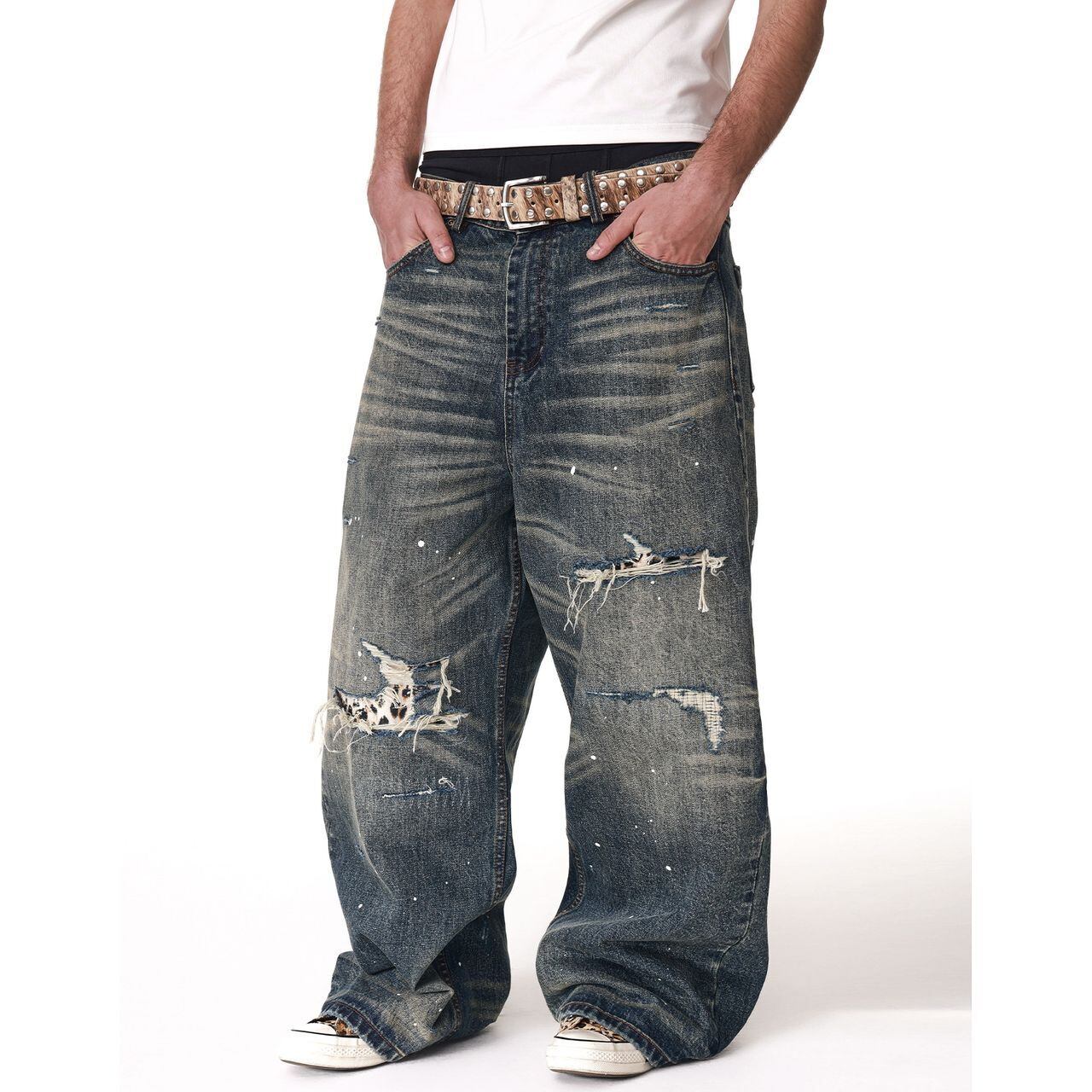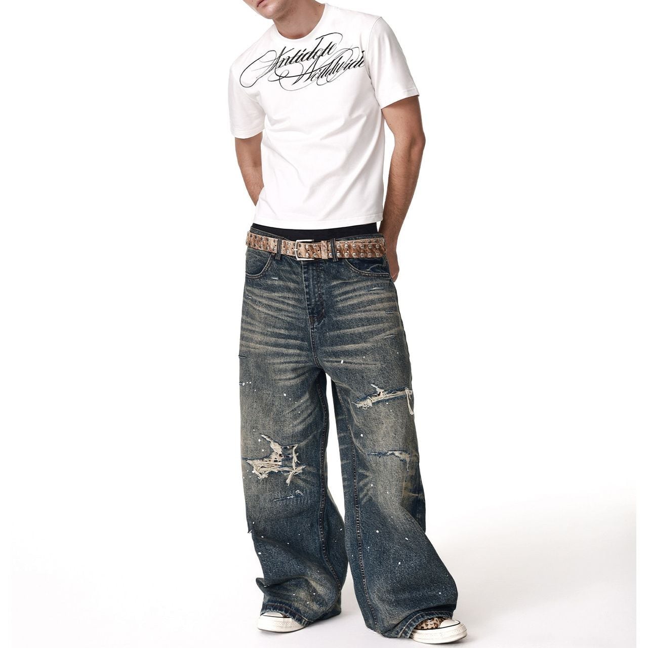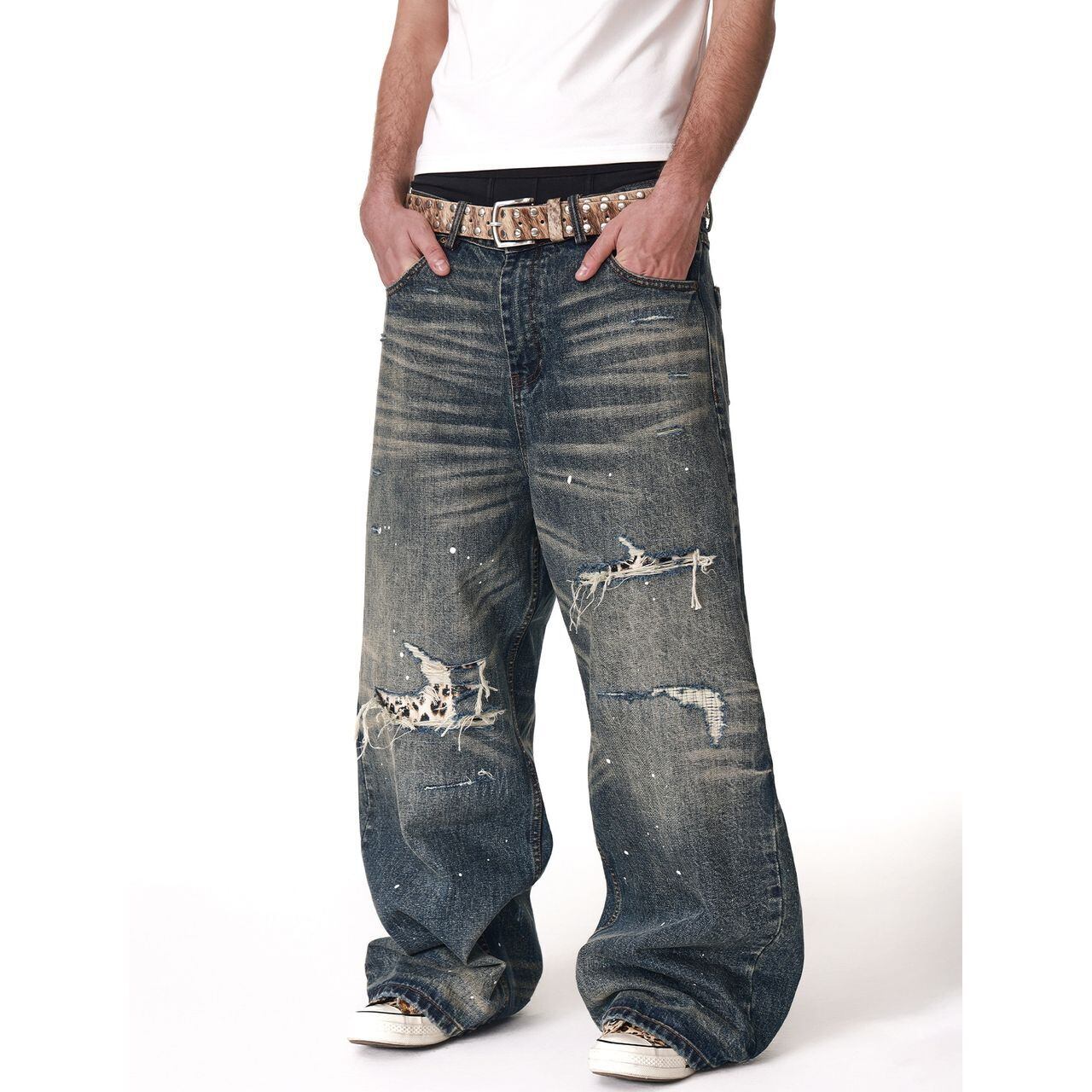 【DRIP6820】ANT Leopard Patch Distressed Baggy Jeans