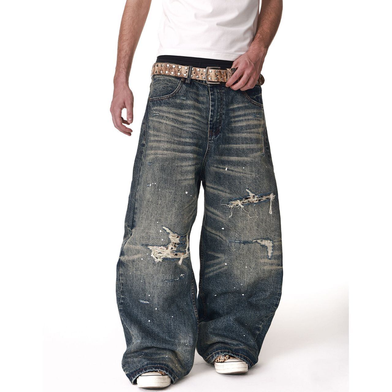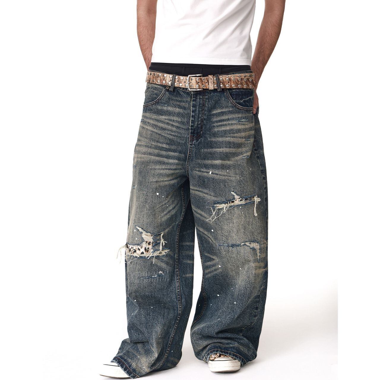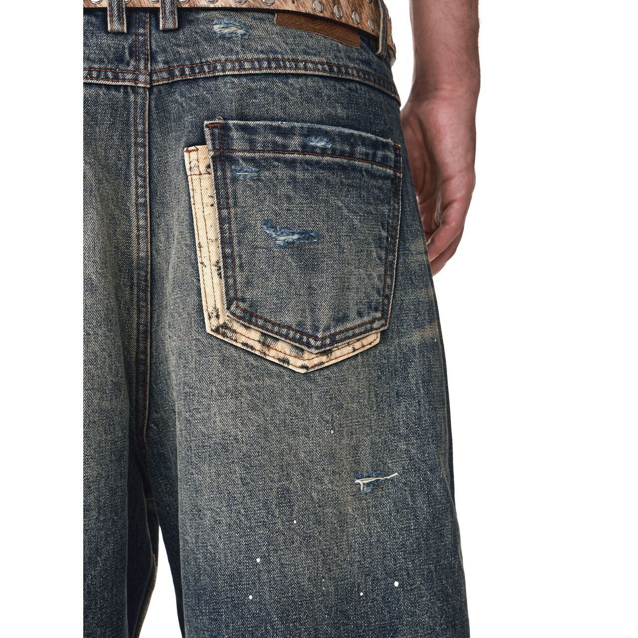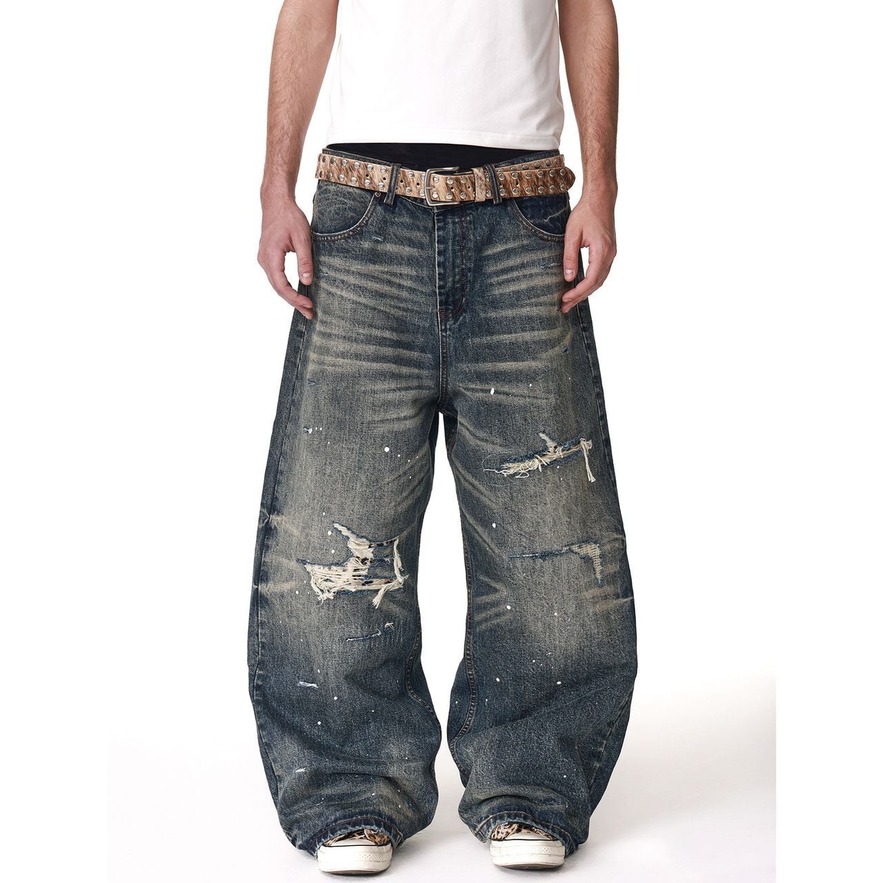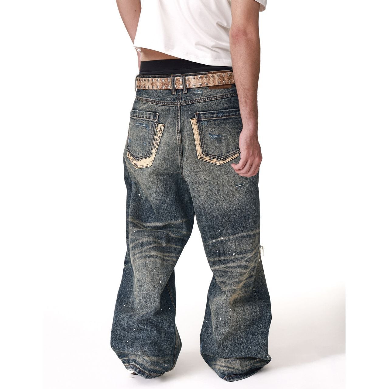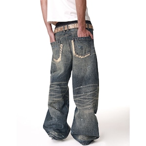 全体に散りばめられたペンキ加工と極太のバギーシルエットが、ヴィンテージライクな雰囲気を演出します。
