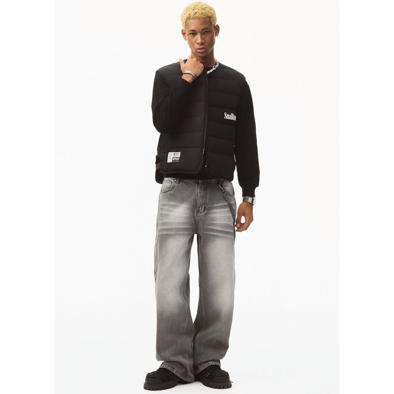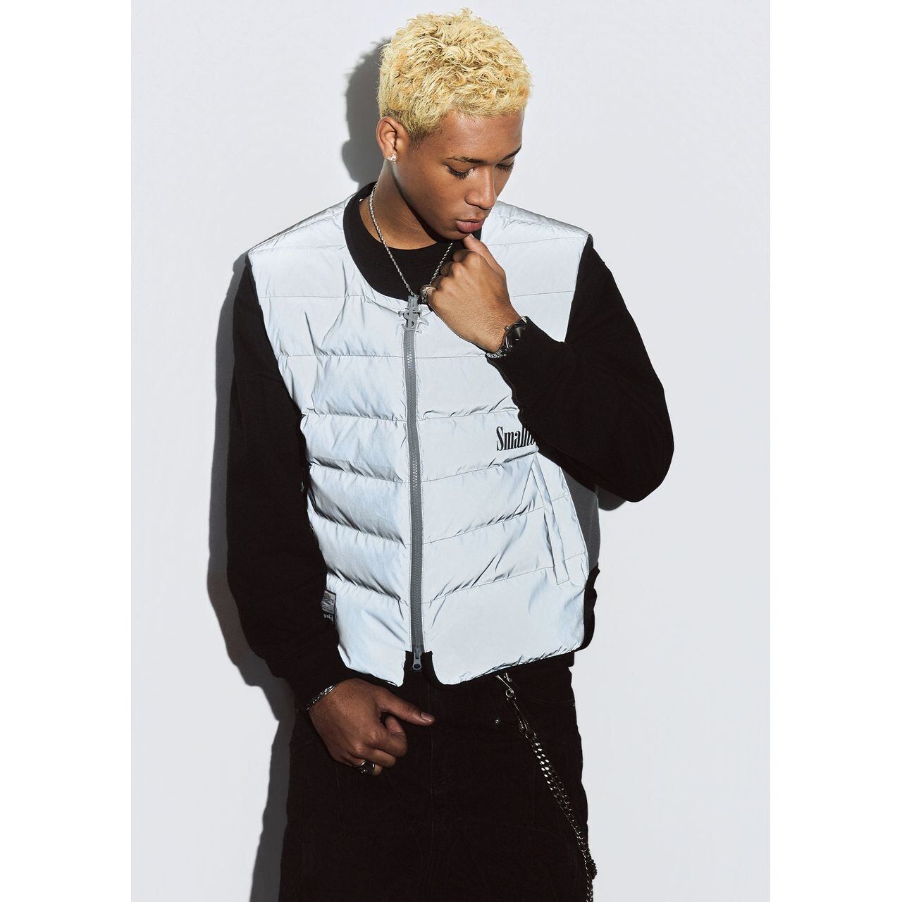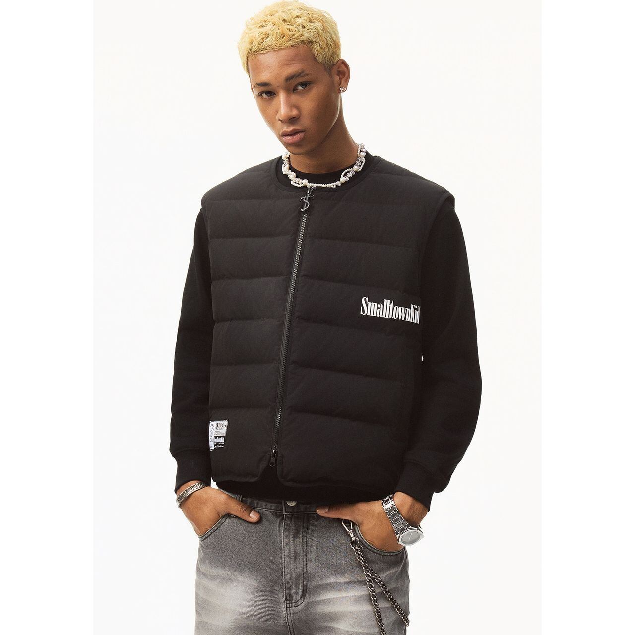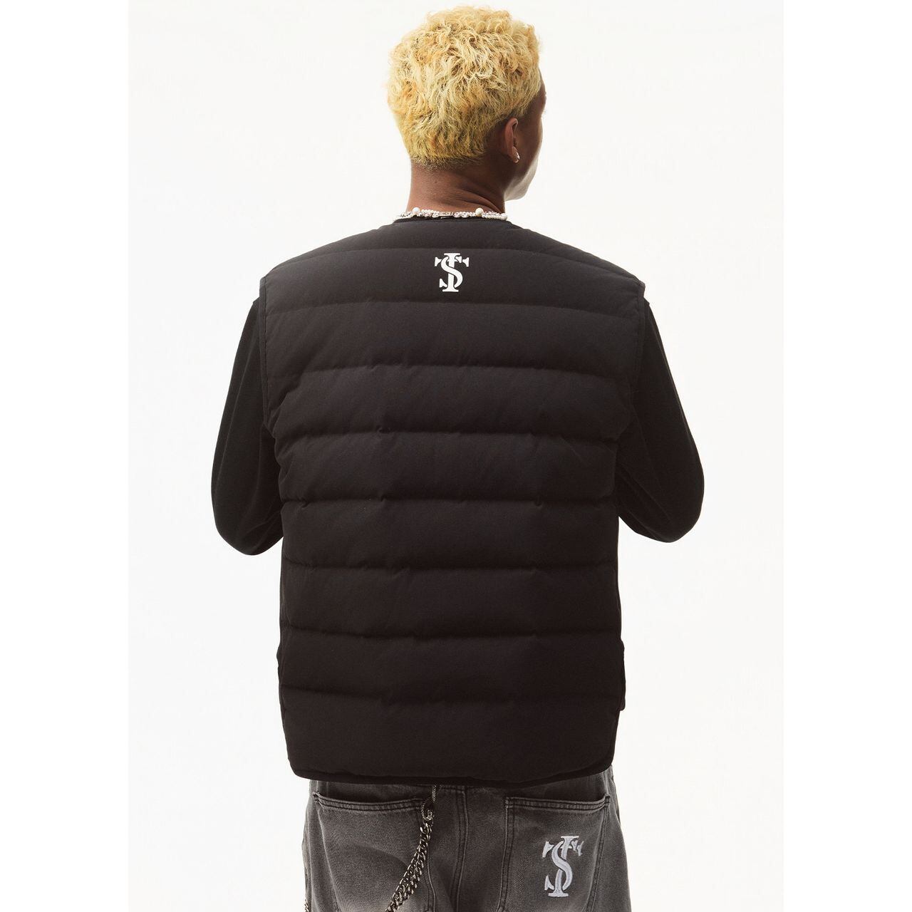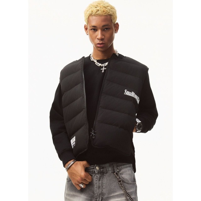 ストリートテイストを格上げする、バックロゴデザインのパデッドベスト。