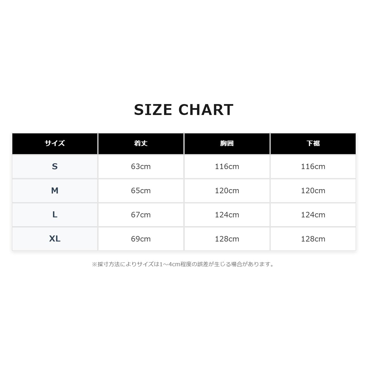 【S】 着丈63cm/胸囲116cm/下裾116cm