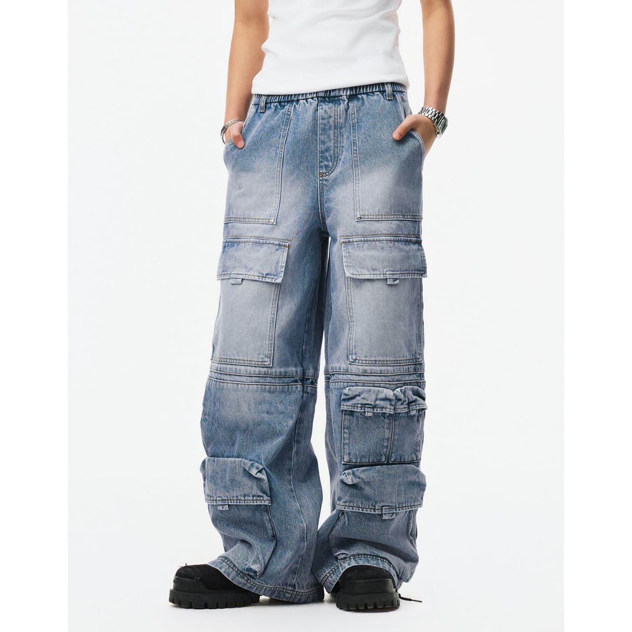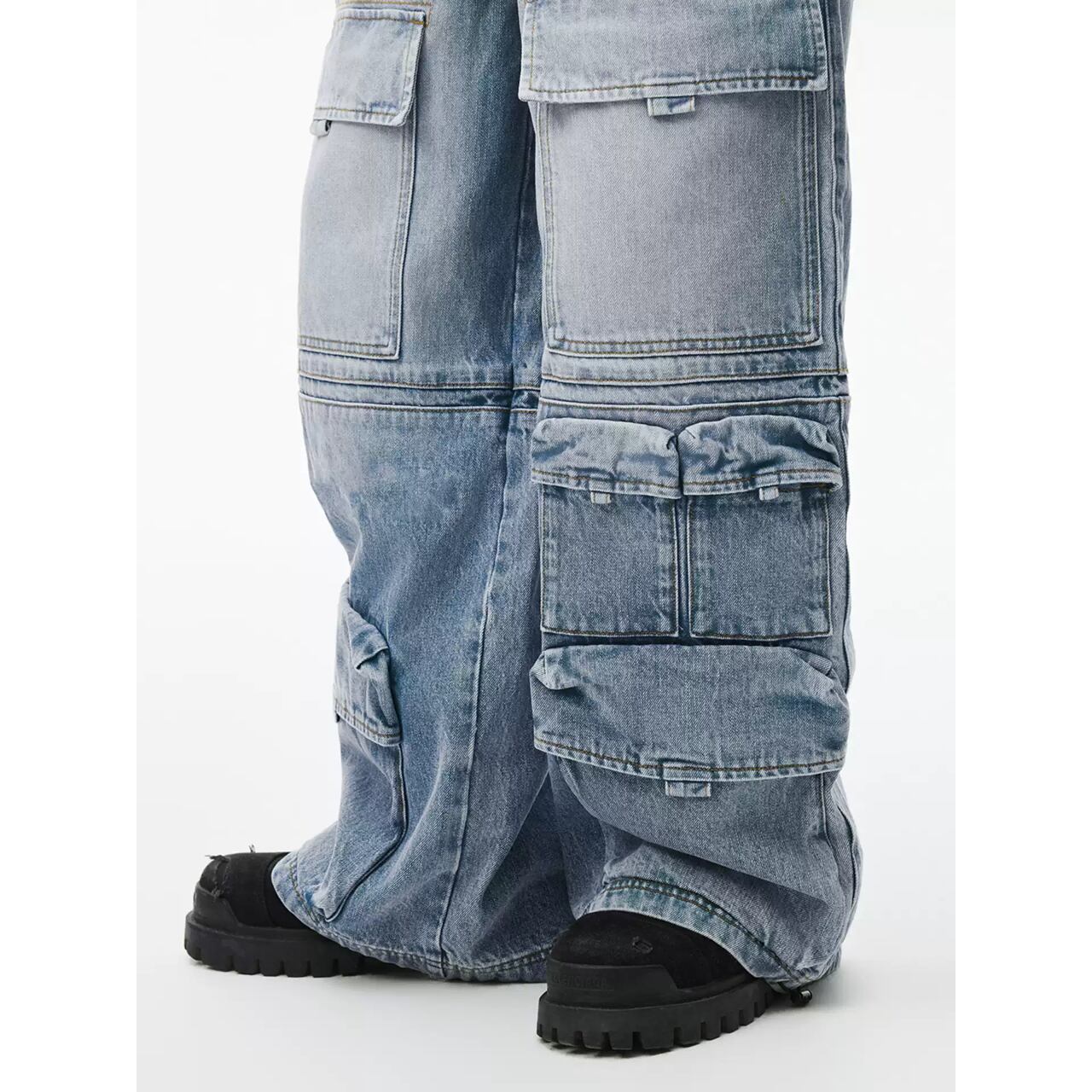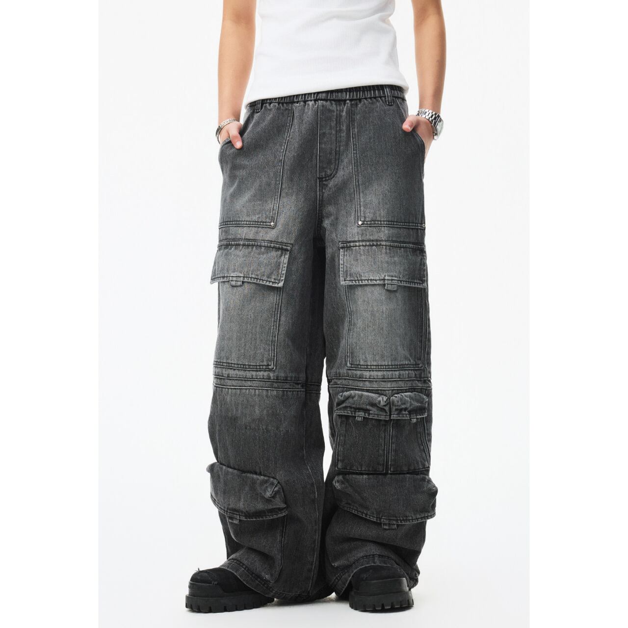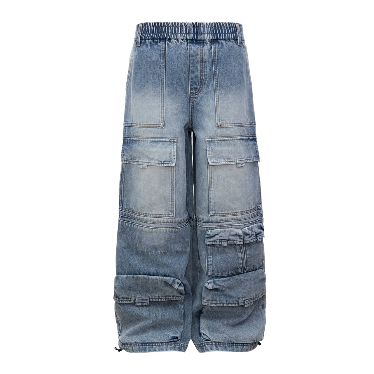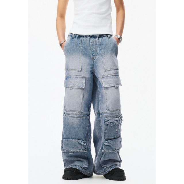 【DRIP6826】STKD Multi Pocket Washed Denim Cargo Pants