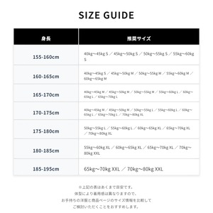 [175-180cm] 50kg~55kg L / 55kg~60kg L / 60kg~65kg XL / 65kg~70kg XL / 70kg~80kg XL