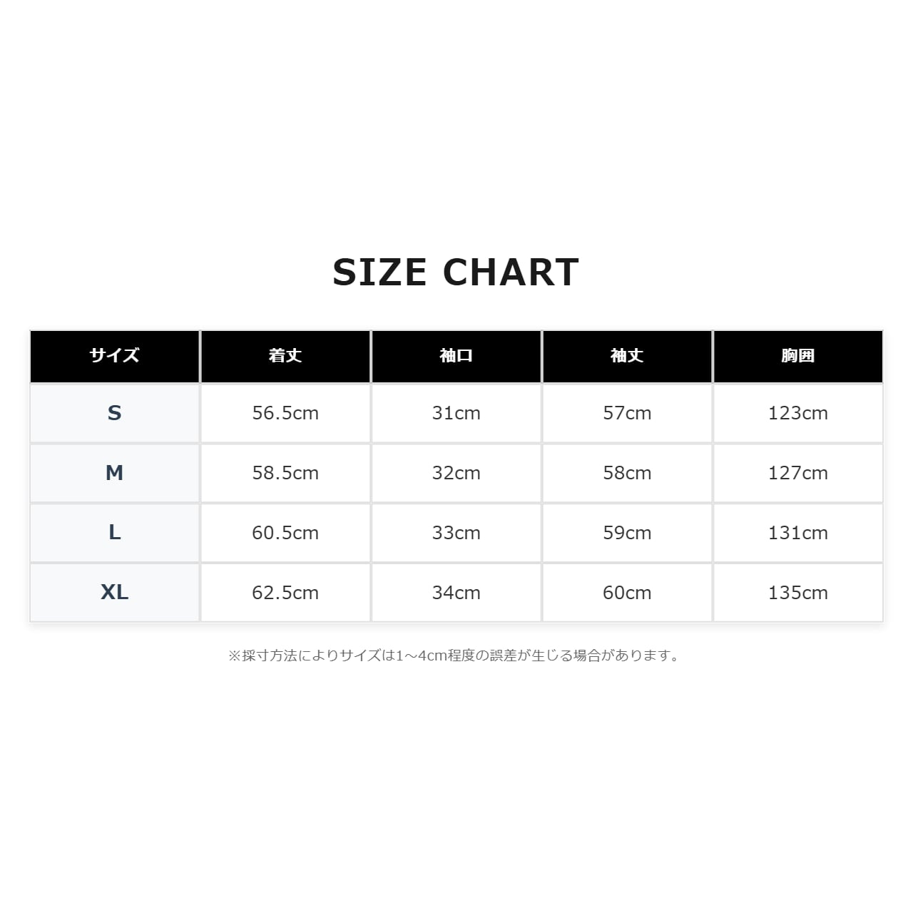 【S】 着丈56.5cm/袖口31cm/袖丈57cm/胸囲123cm
