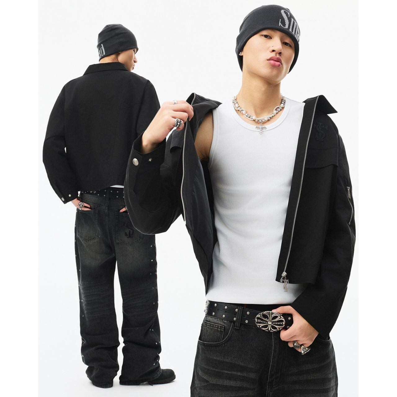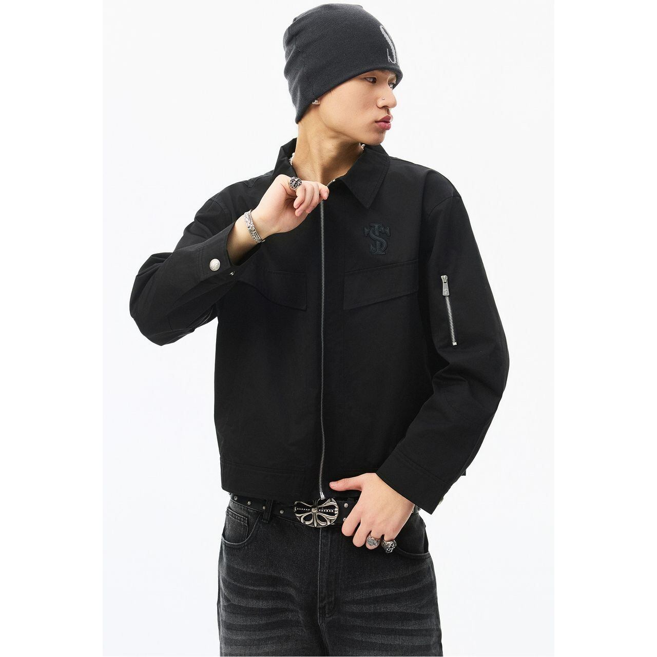 【DRIP6827】STKD Cropped Work Jacket with Front Pockets