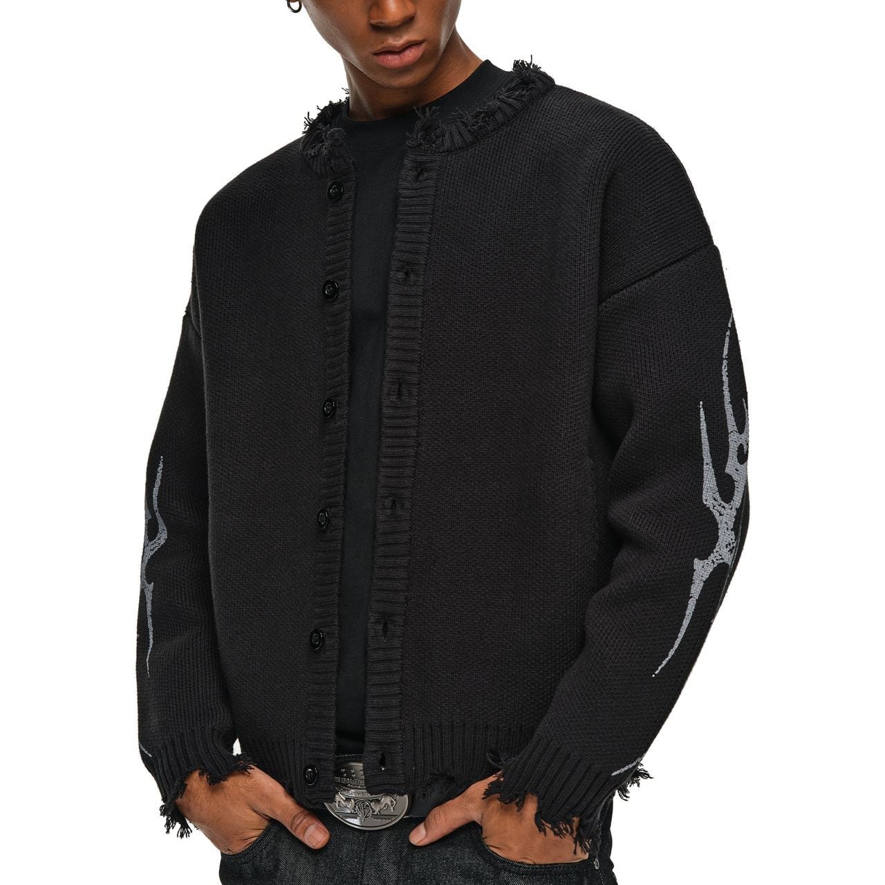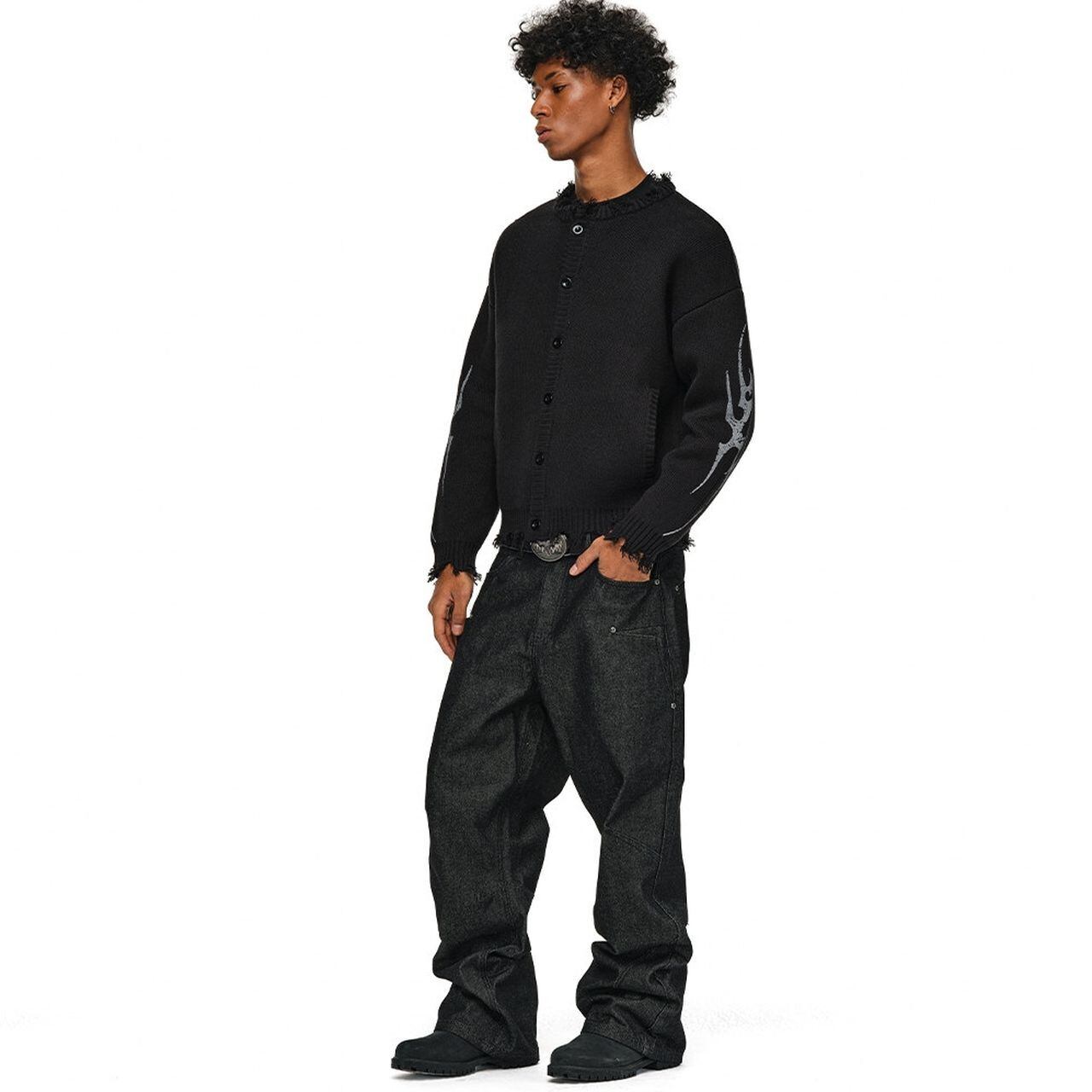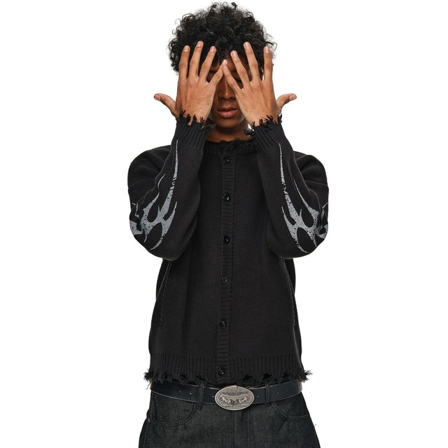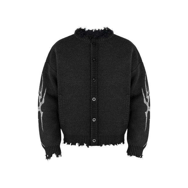 【DRIP6829】ANT Gothic Tribal Graphic Distressed Cardigan