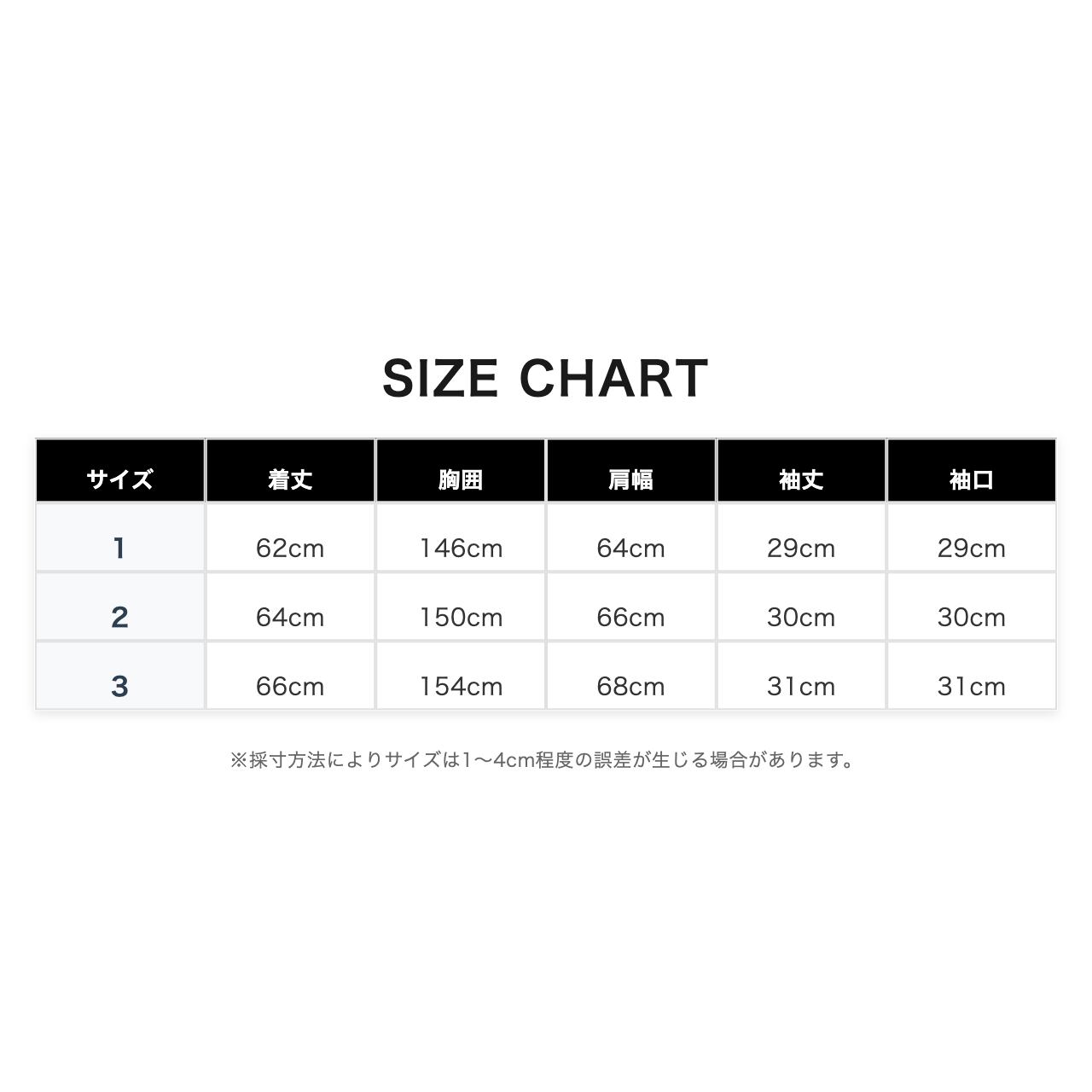 【3】 着丈66cm/胸囲154cm/肩幅68cm/袖丈31cm/袖口31cm