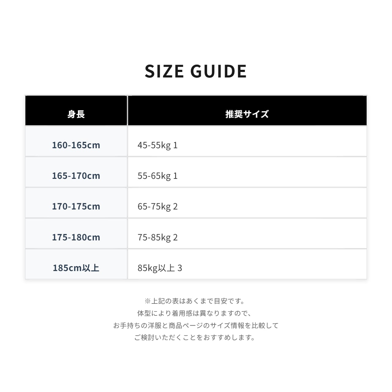 ■ 身長別 サイズ推奨リスト