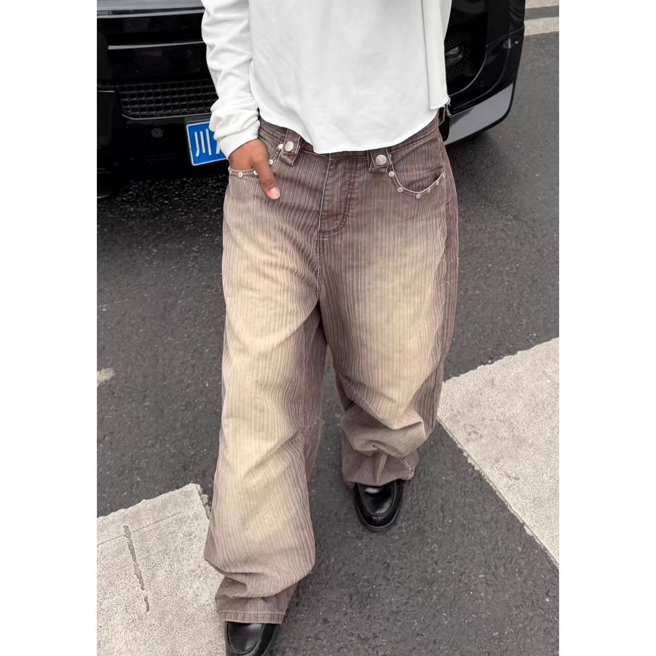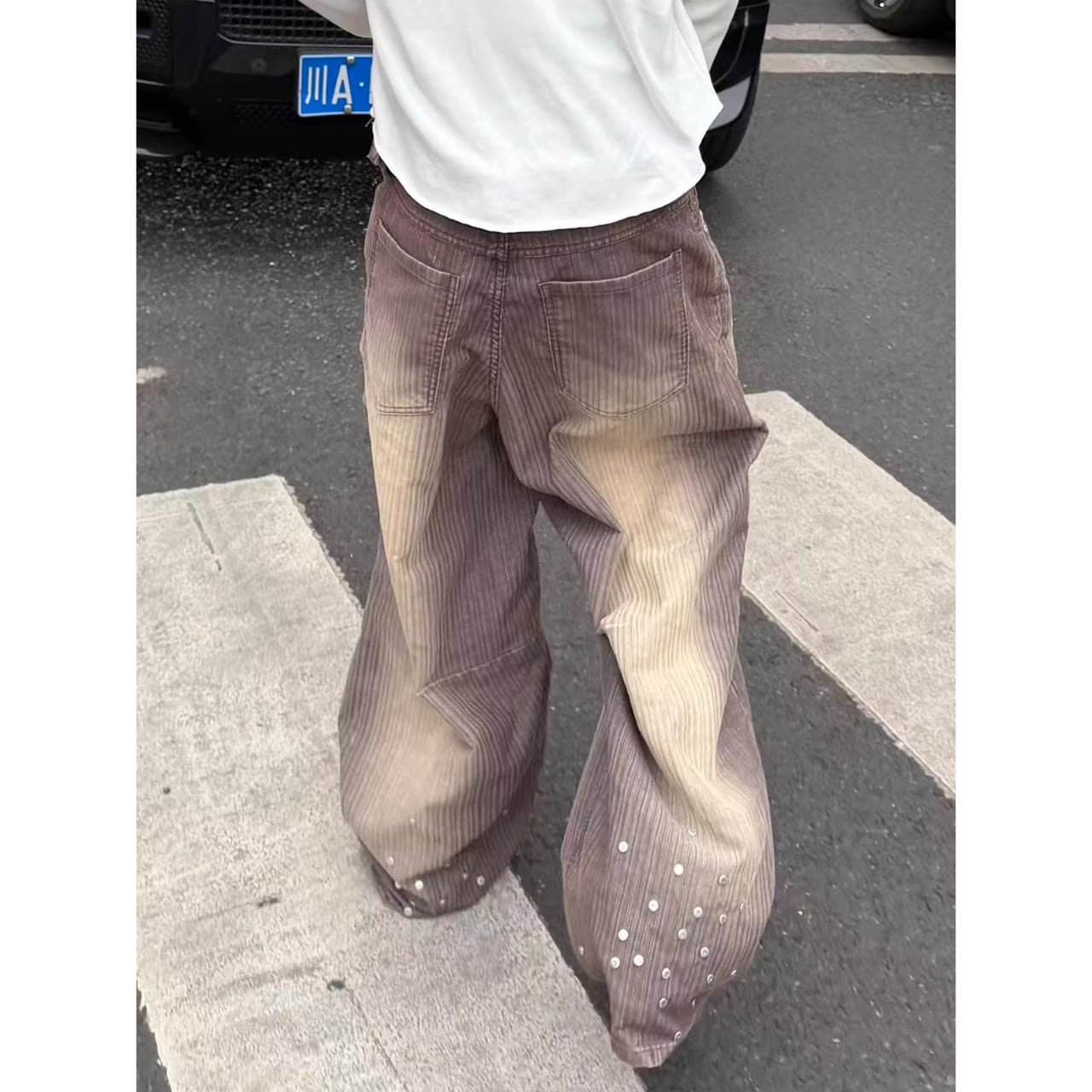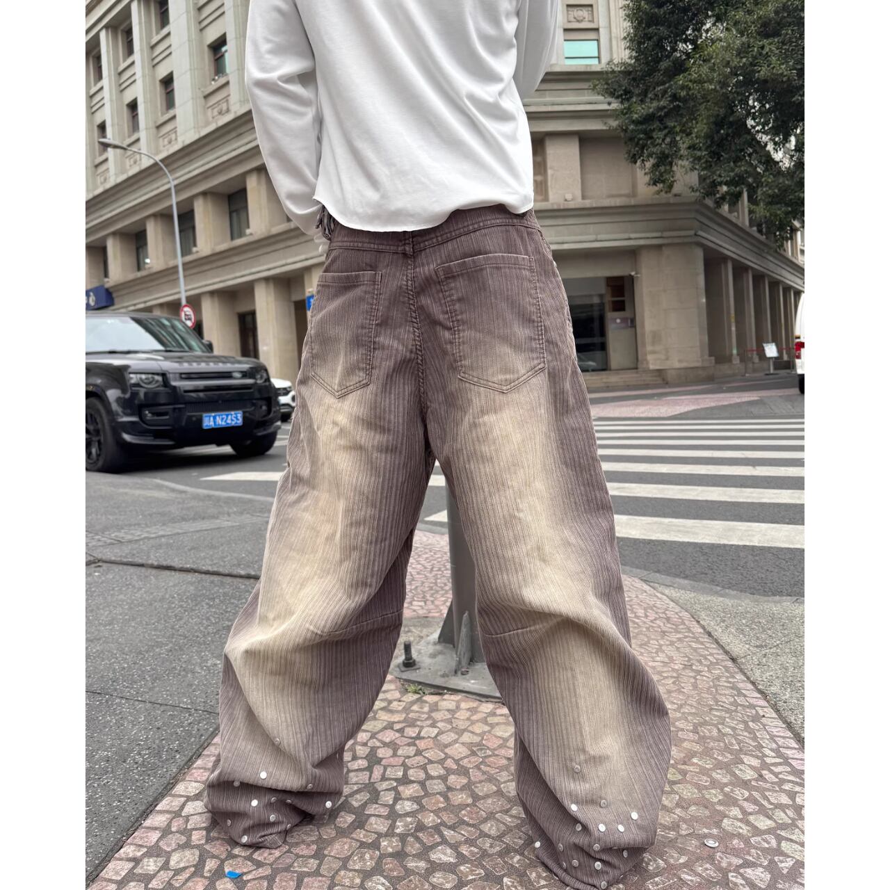 ウォッシュ加工が施されたコーデュロイ生地に、グラデーションカラーが目を引くストレートパンツ。