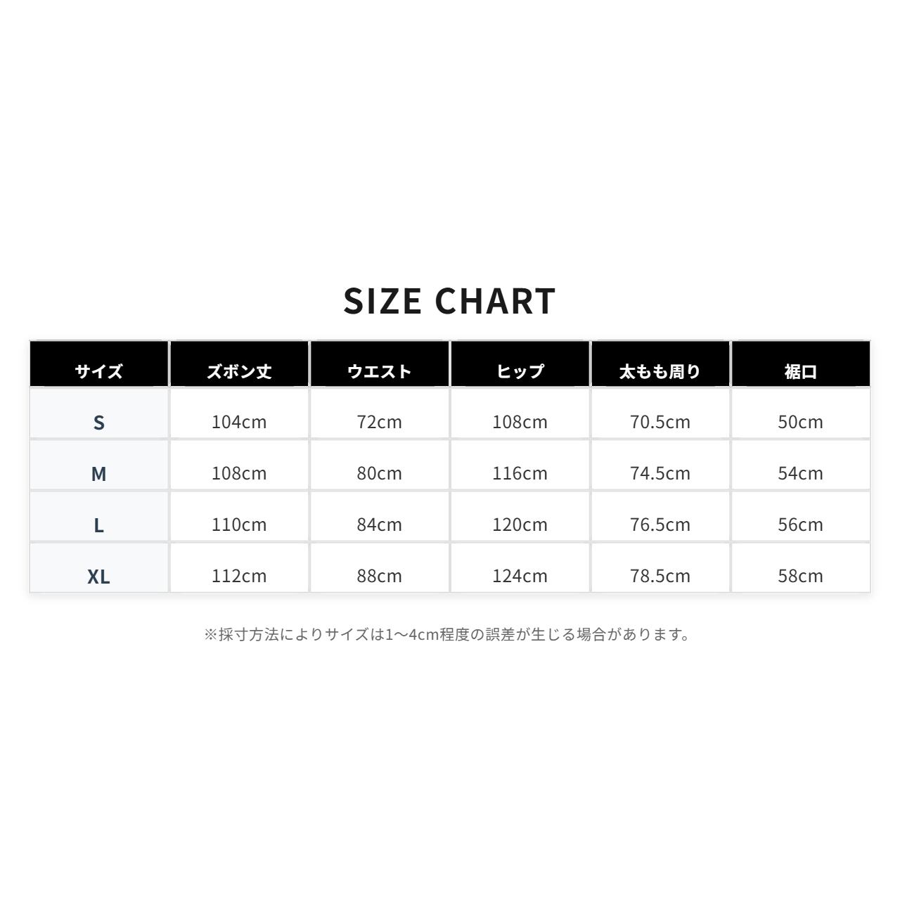【S】 ズボン丈104cm/ウエスト72cm/ヒップ108cm/太もも周り70.5cm/裾口50cm