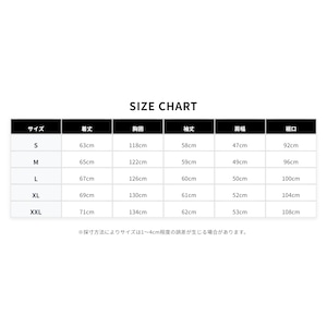 【XXL】 着丈71cm/胸囲134cm/袖丈62cm/肩幅53cm/裾口108cm