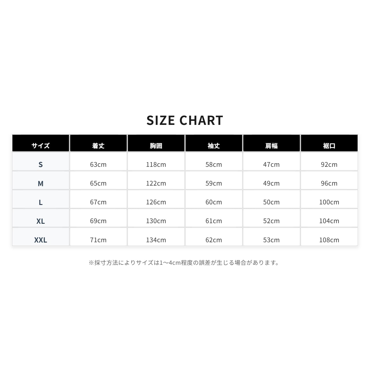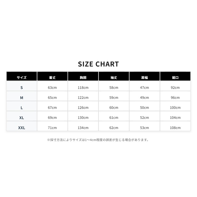 【S】 着丈63cm/胸囲118cm/袖丈58cm/肩幅47cm/裾口92cm