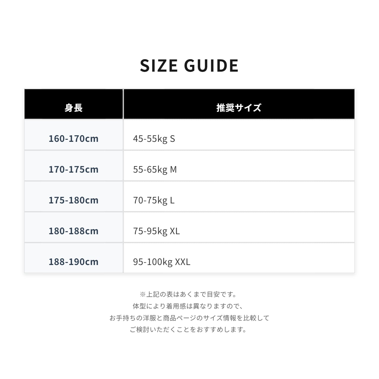 ■ 身長別 サイズ推奨リスト