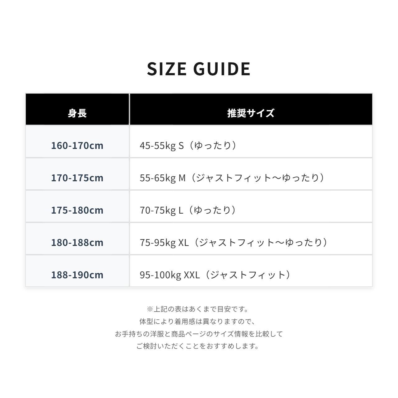 [175-180cm] 70-75kg L(ゆったり)