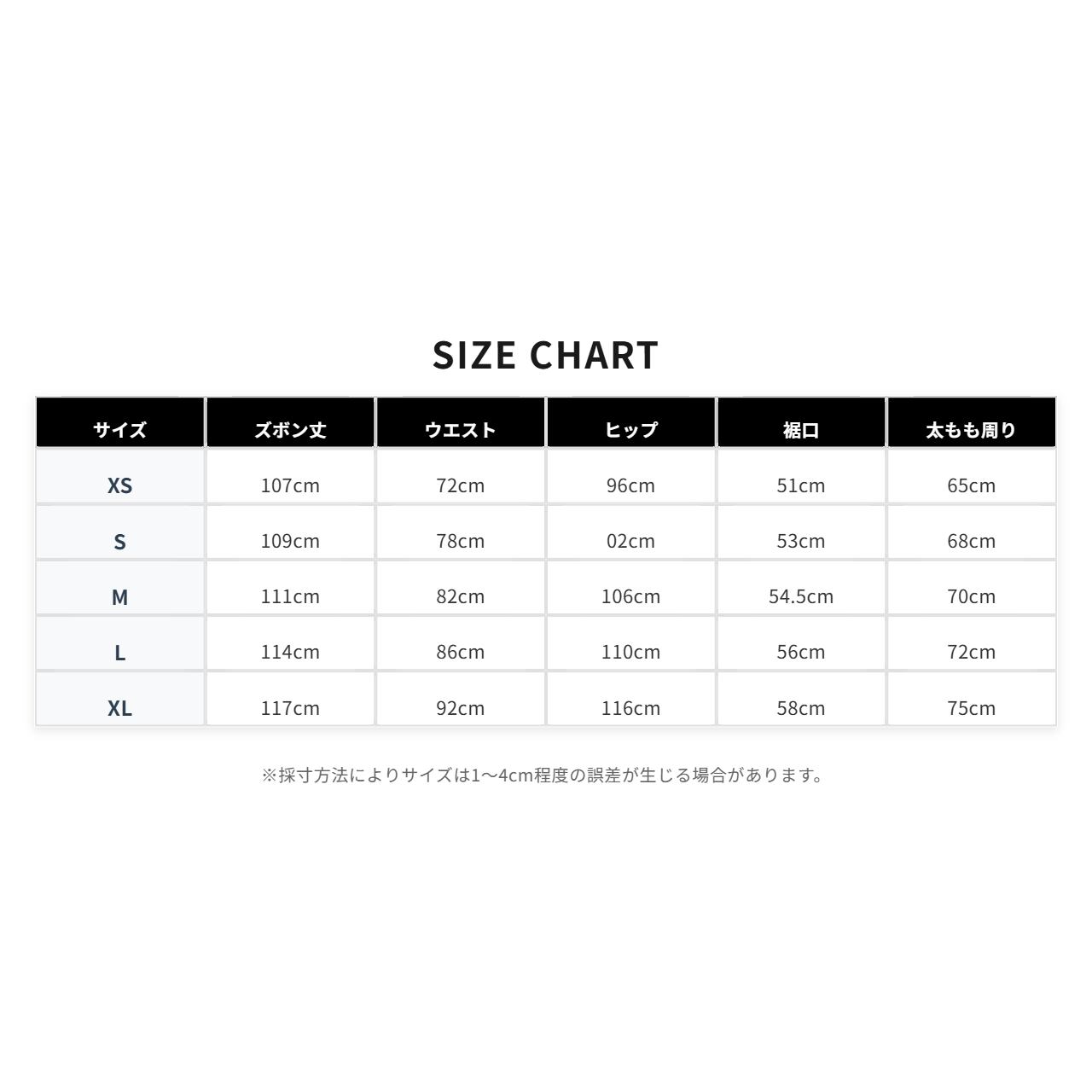 【XS】 ズボン丈107cm/ウエスト72cm/ヒップ96cm/裾口51cm/太もも周り65cm