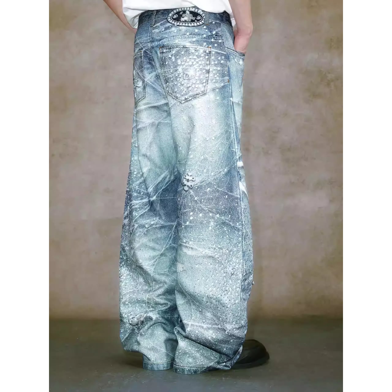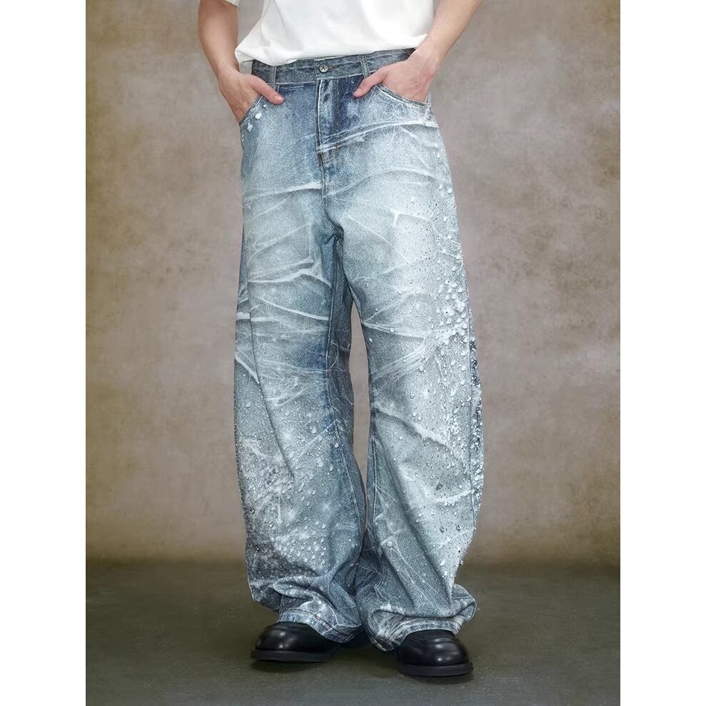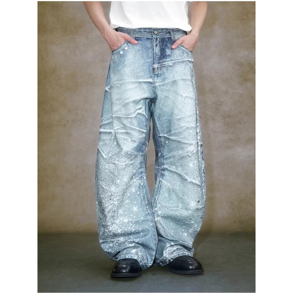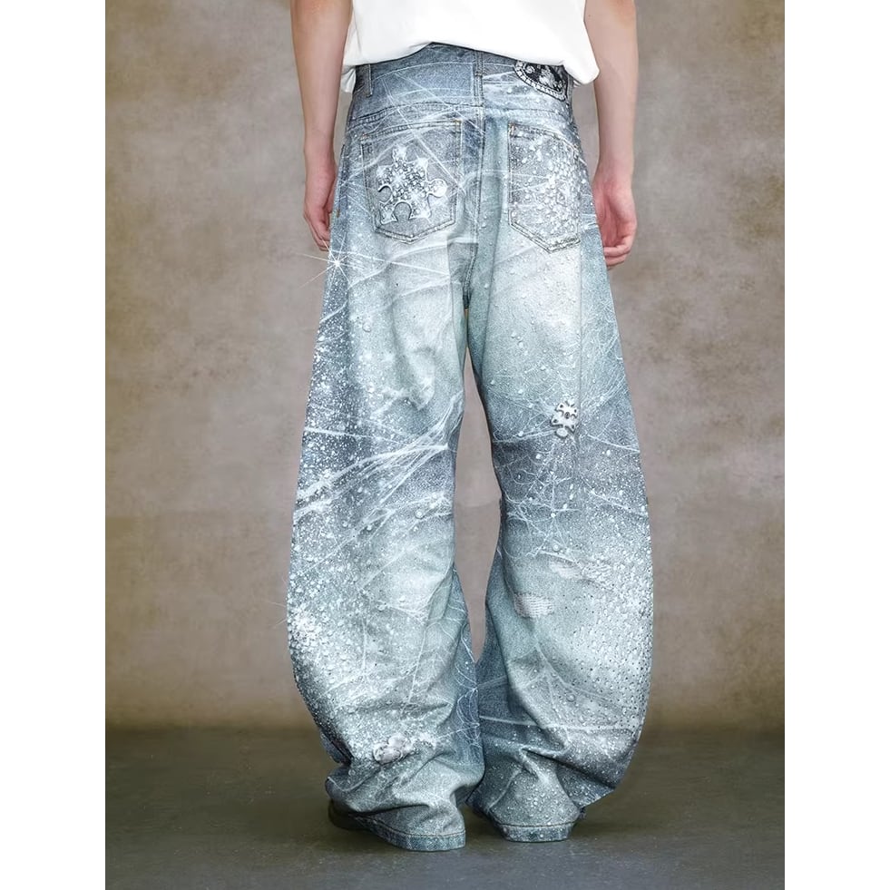 【DRIP6839】YAD CREW 3D Print Rhinestone Splatter Denim Jeans