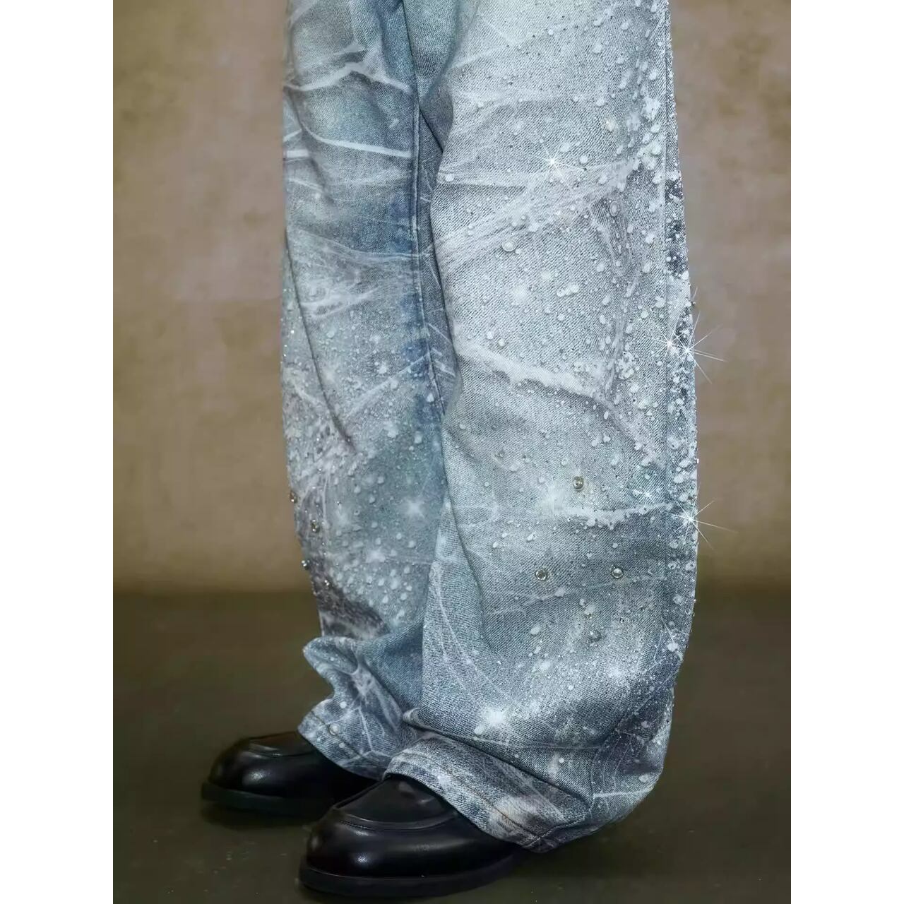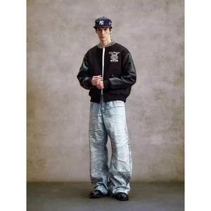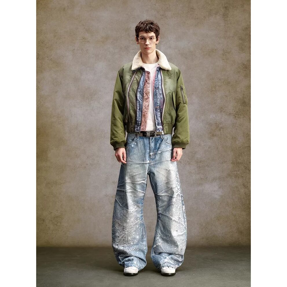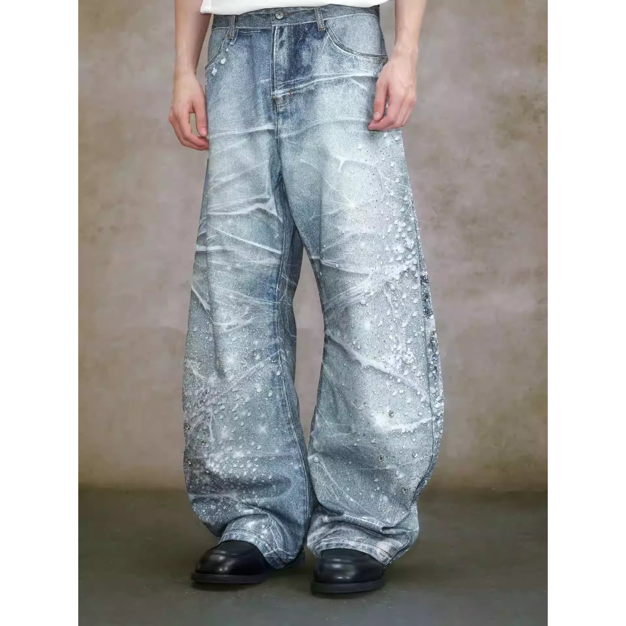 【DRIP6839】YAD CREW 3D Print Rhinestone Splatter Denim Jeans