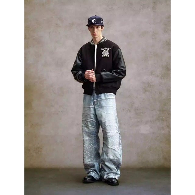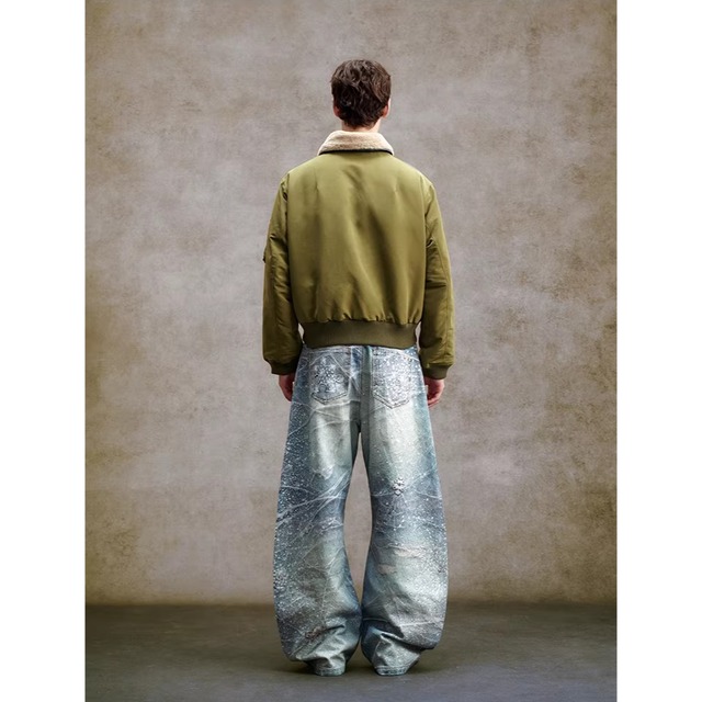 ワイドなシルエットと独特の加工感が、ストリートスタイルに映える一本。