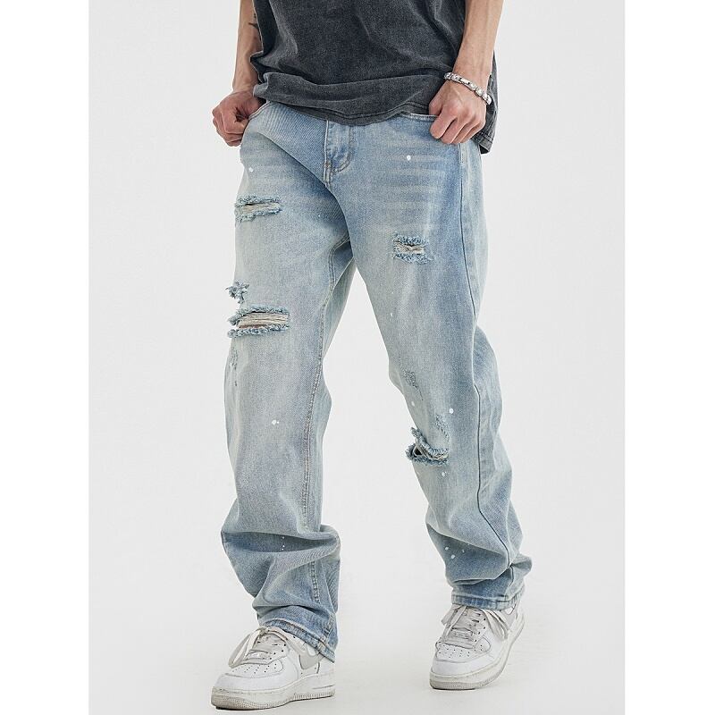 【DRIP0298】D/B Washed Torn Loose Straight Denim