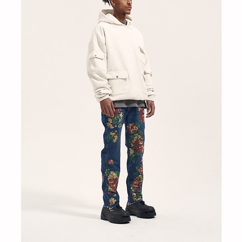 【DRIP0357】D/B Hand-painted Floral Graffiti Denim