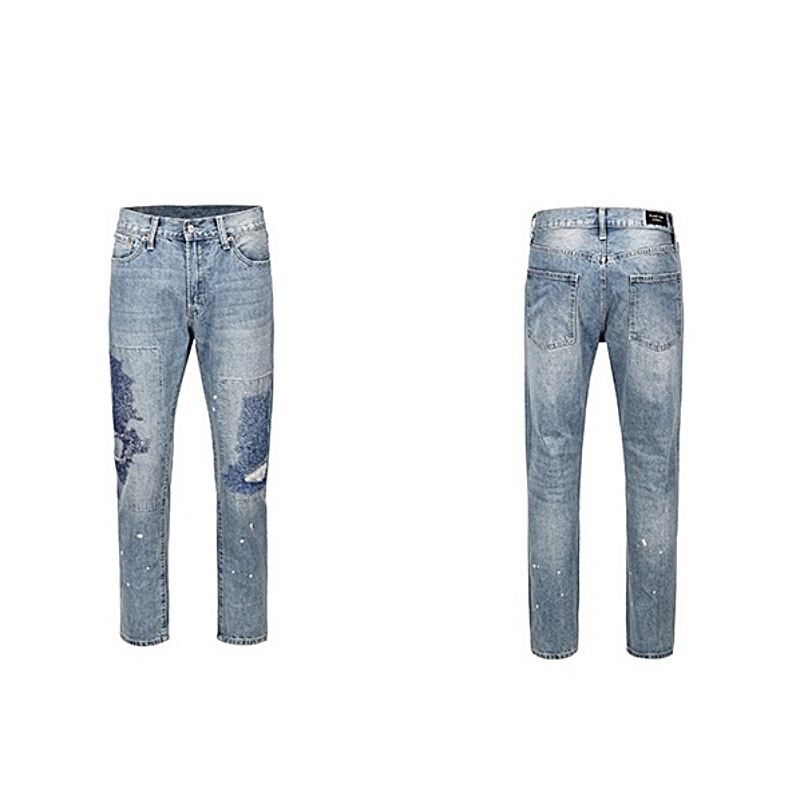 【DRIP0479】D/B Embroidered Torn Straight Denim