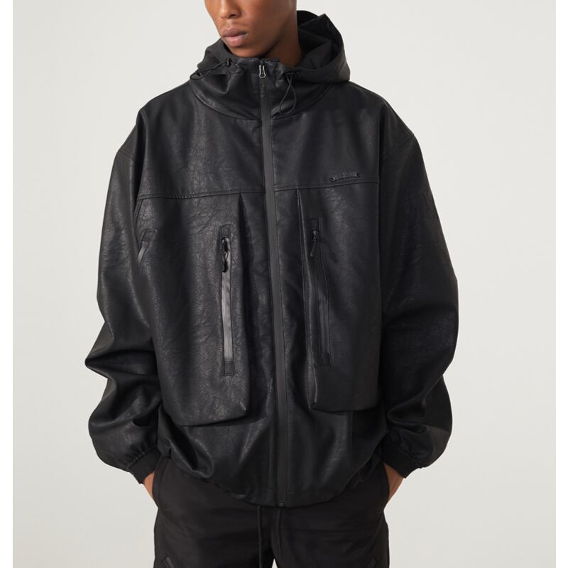 【DRIP1193】R69 Retro Hooded Leather Jacket