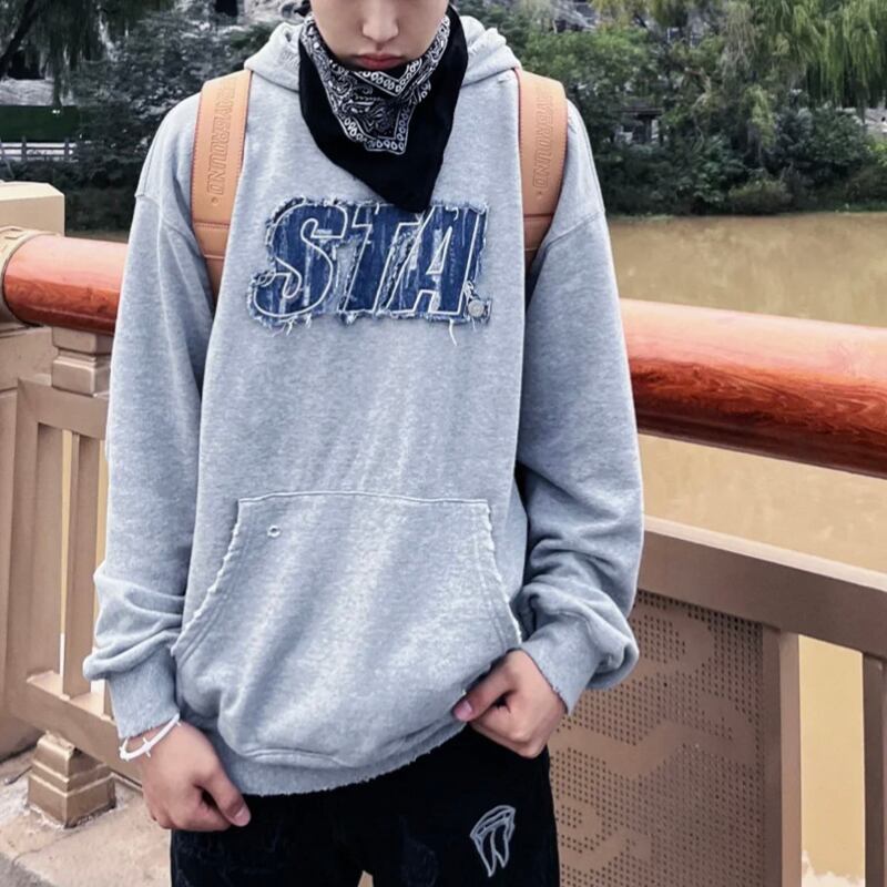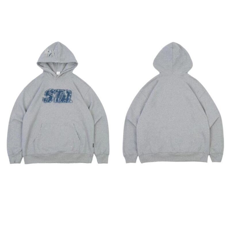 【DRIP1375】STA Frayed Hole Denim Logo Hoodie