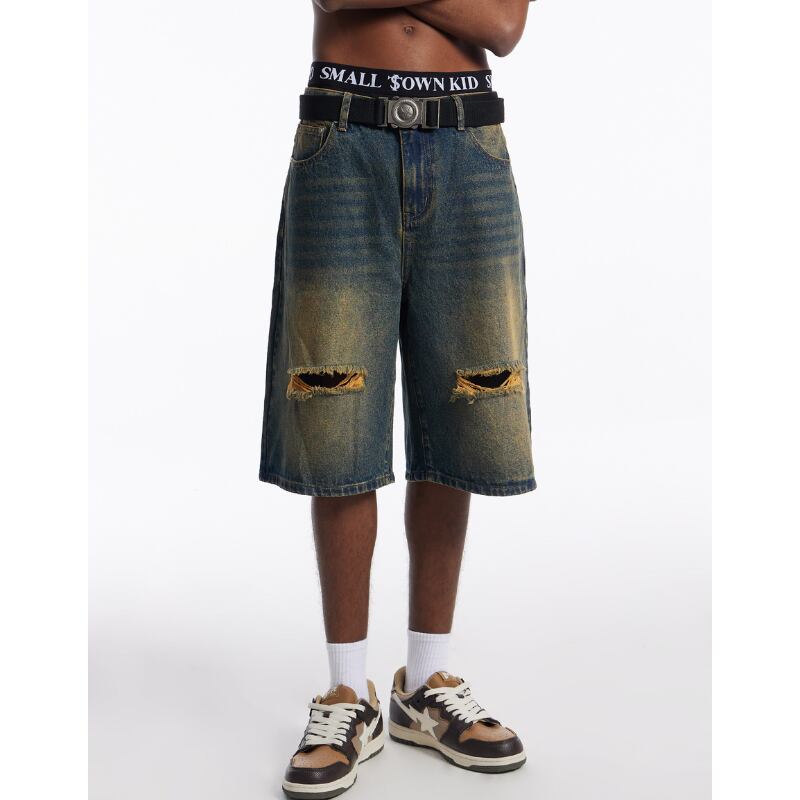 【DRIP2203】STK Torn Damaged Casual Denim Shorts