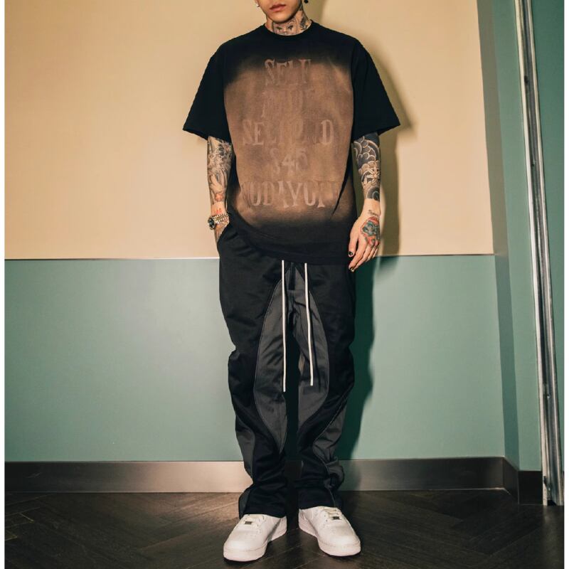 【DRIP2420】S45 Bicolor Stitching Loose Nylon Pants