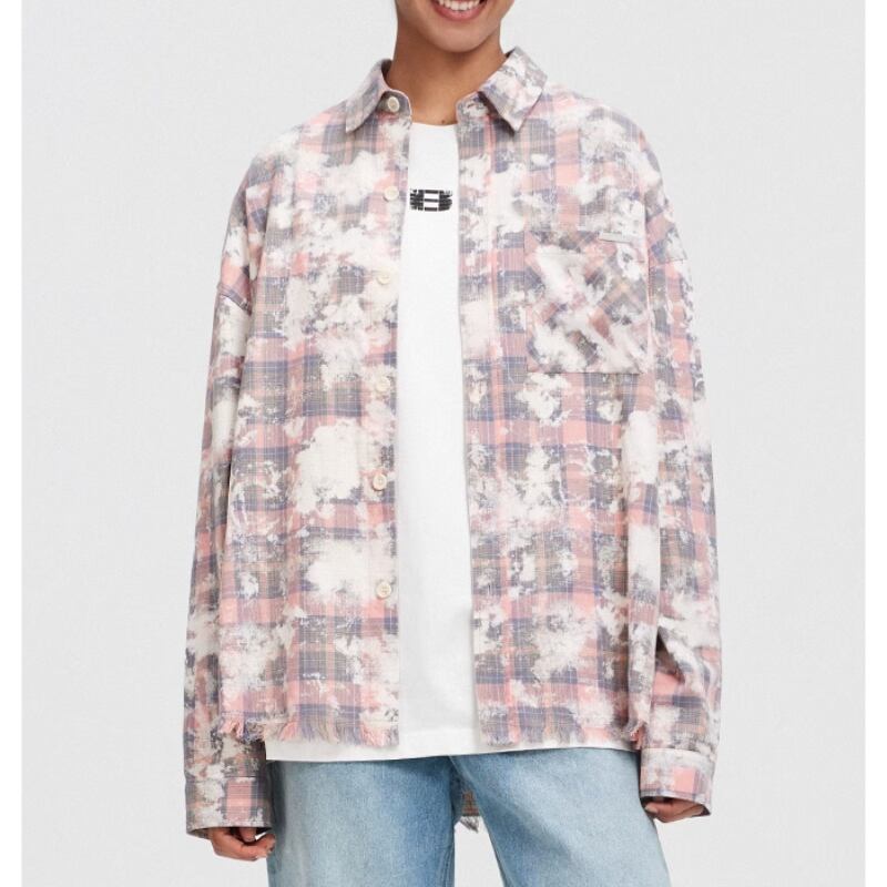 【DRIP2893】BNLS Sleeve Logo Print Frayed Check Shirt