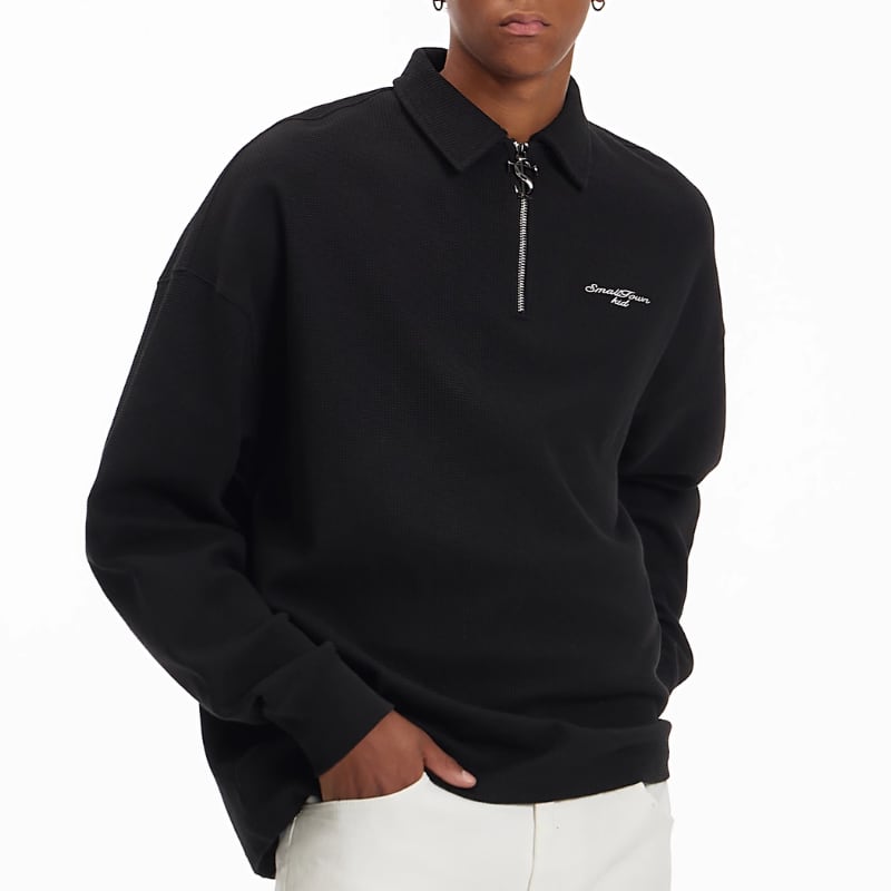 【DRIP3501】STKD Simple Logo Half Zip Waffle Fabric Tee
