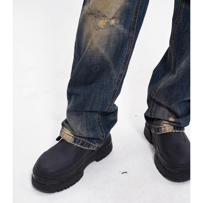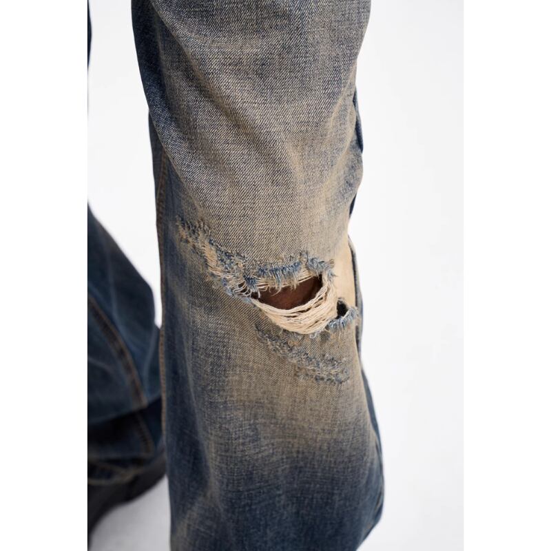 【DRIP3981】D/B Washed Torn Damaged Loose Denim