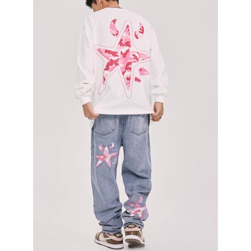 【DRIP3994】WH Camouflage Logo Star Patch Embroidered Denim