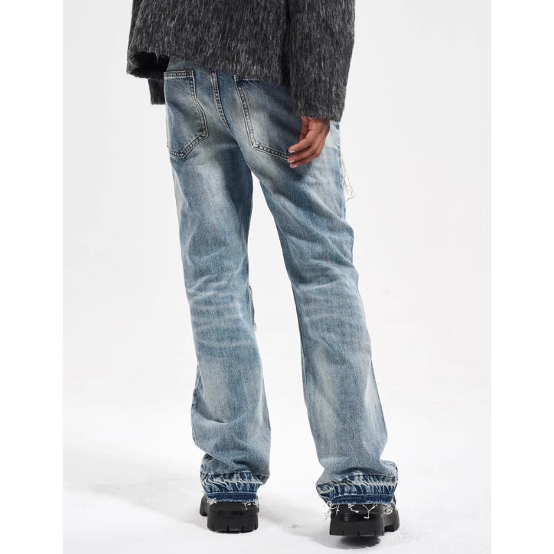 【DRIP4124】D/B Hole Patch Damaged Denim