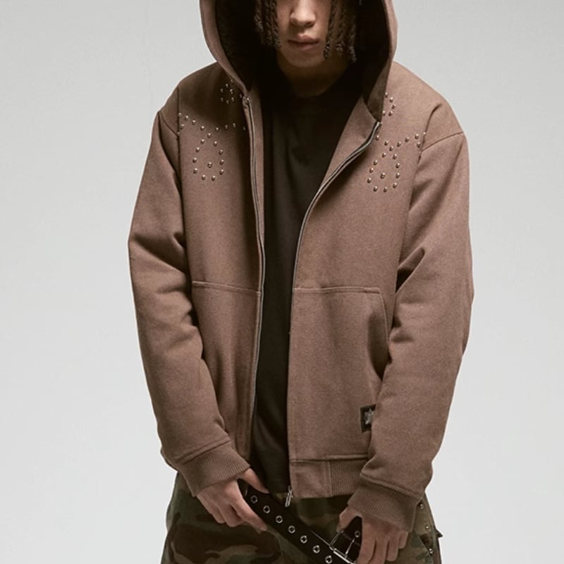 【DRIP4233】NR Ancient Logo Print Studded Hoodie