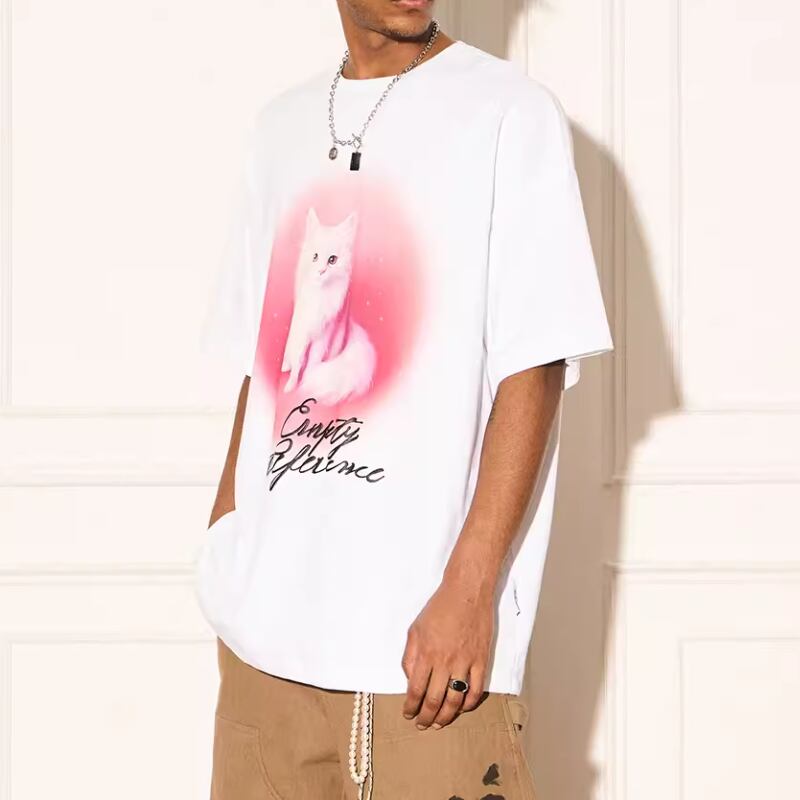 【DRIP4676】EMP White Cat Print Tee