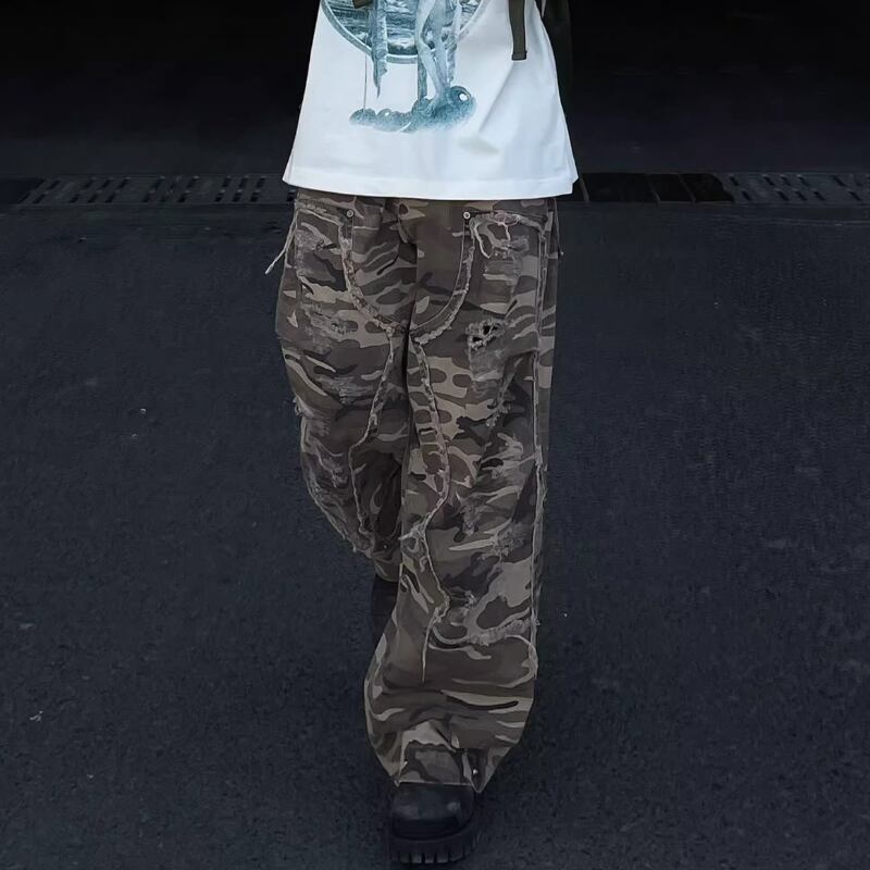 【DRIP5300】F2CE Loose Silhouette Frayed Camouflage Pants